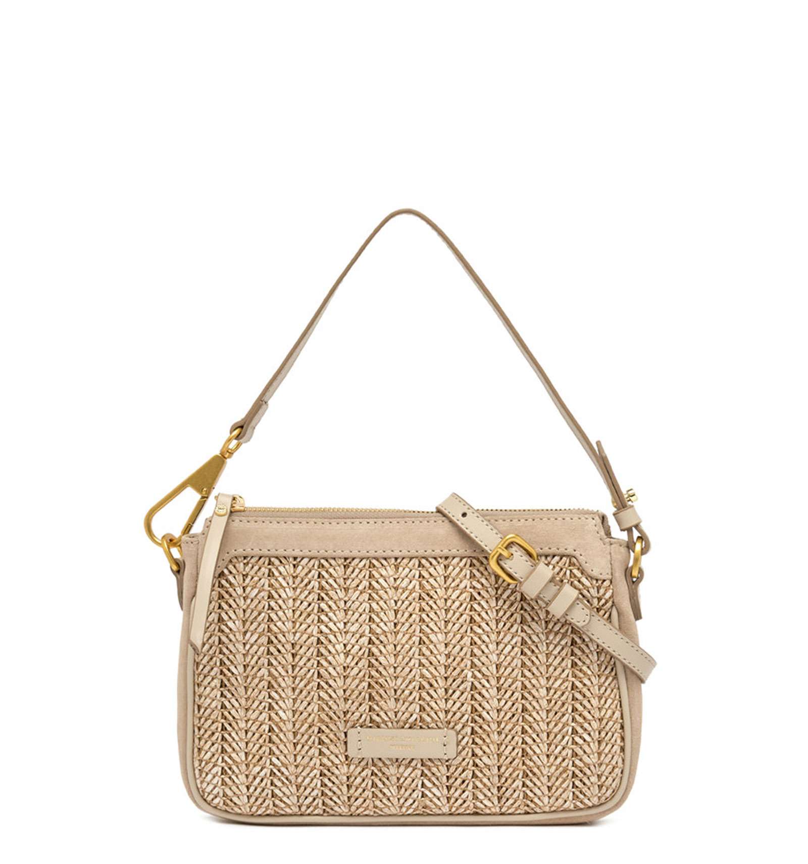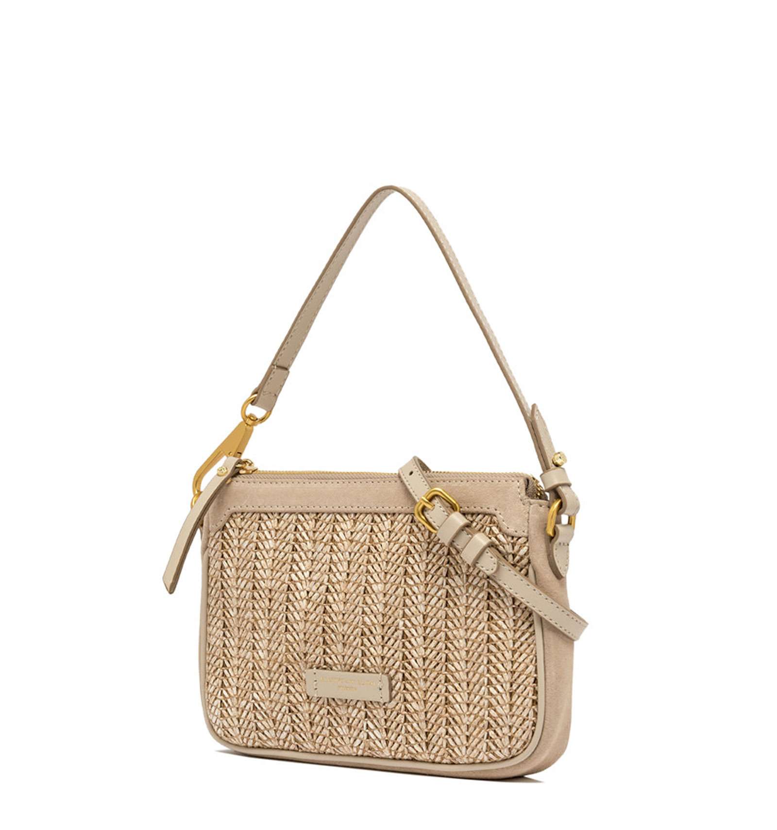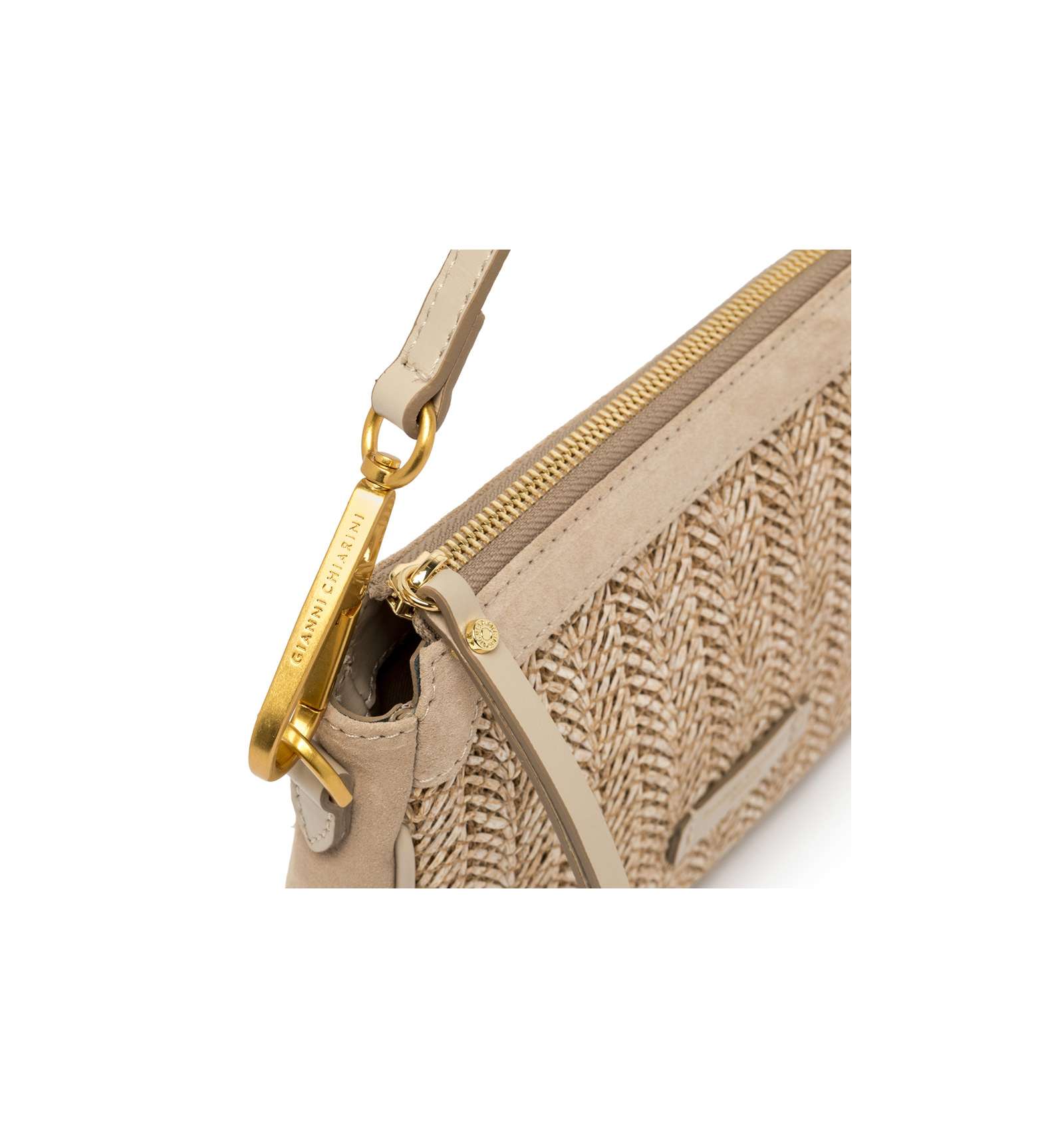 Simple and elegant, the Brooke bag by Gianni Chiarini Firenze is the perfect accessory for those who want a fresh, summery vibe with everyday practicality. Made from woven straw, it brings rustic charm to life and is finished with leather trim, a top zip closure, and a stylish hook detail on the removable handle. It also comes with an additional shoulder strap, making it ideal for everything from seaside outings to city strolls. Size: 23x14x4 cm.