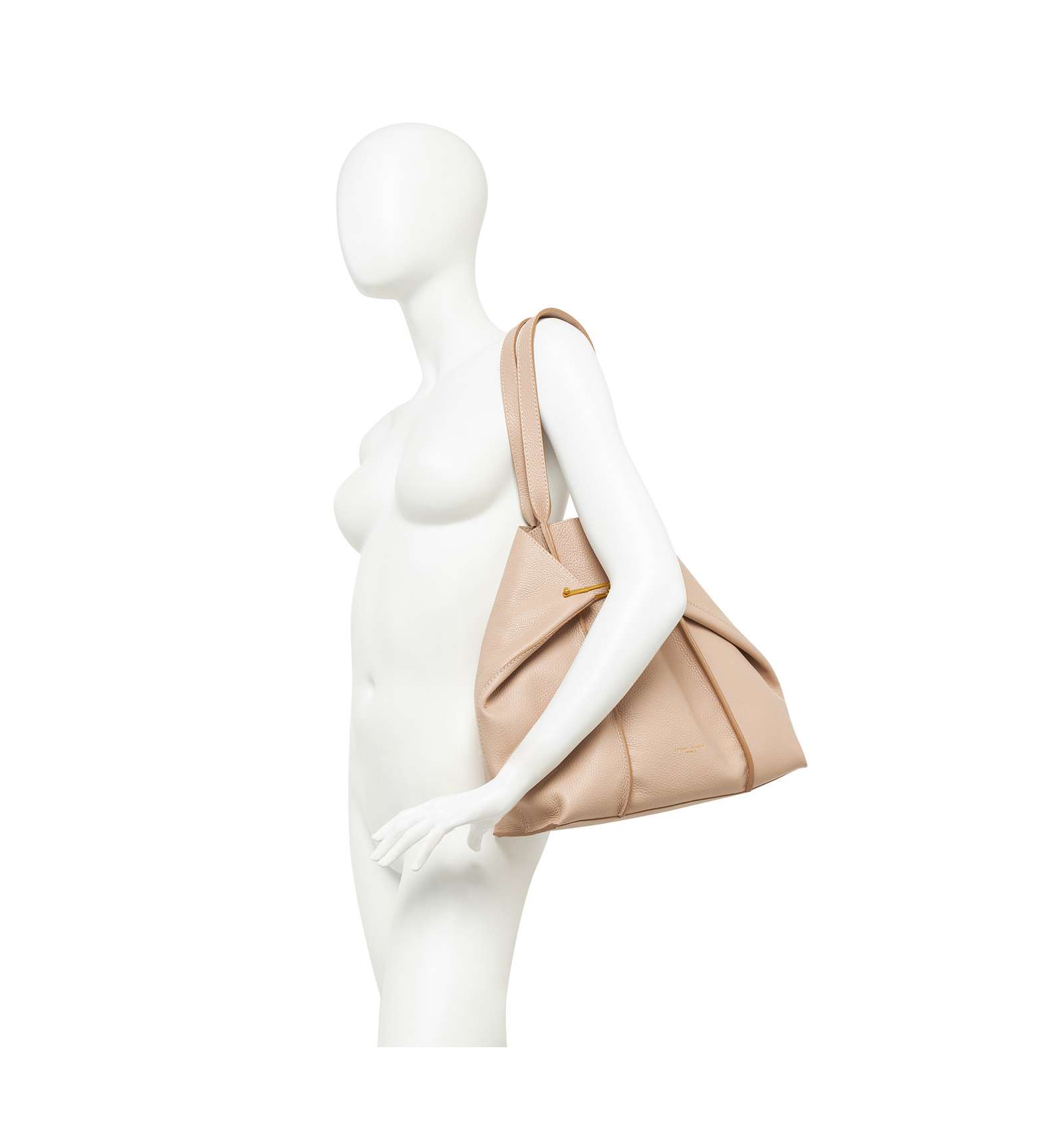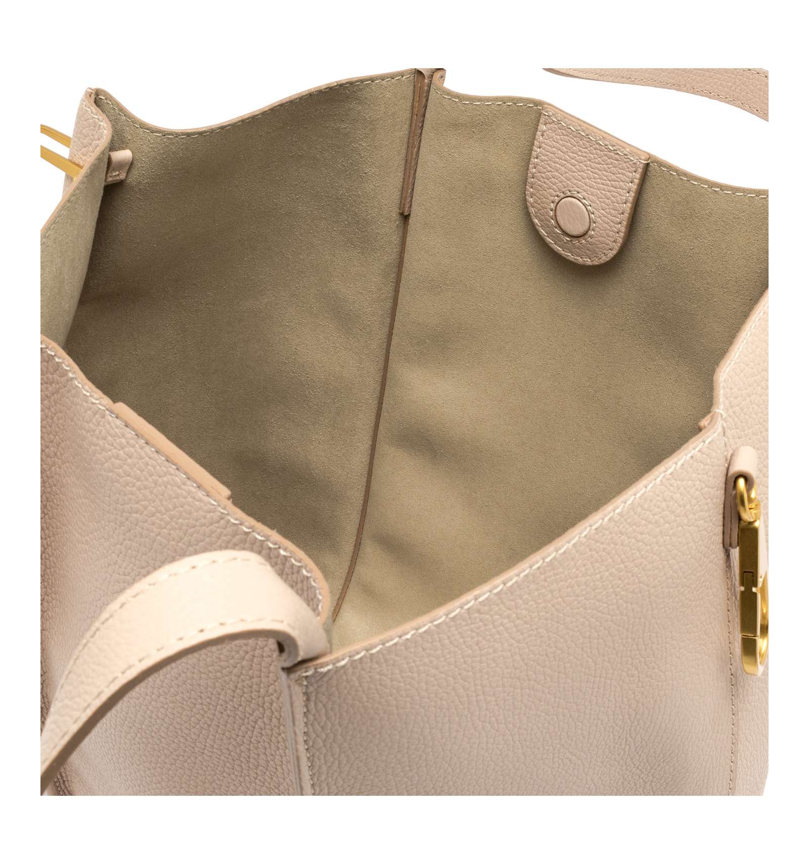 The Zahara shopper by Gianni Chiarini Firenze is the perfect accessory for a minimal yet dynamic look. Crafted from hammered leather, its soft structure and ribbed construction create a uniquely textured finish. The standout feature is the iconic logo-engraved snap hook, adding a touch of originality. Practical and versatile, Zahara includes two top handles for hand carry. The main compartment features the signature snap hook closure, allowing you to adjust the bag's width. Size: 34x34x15 cm.