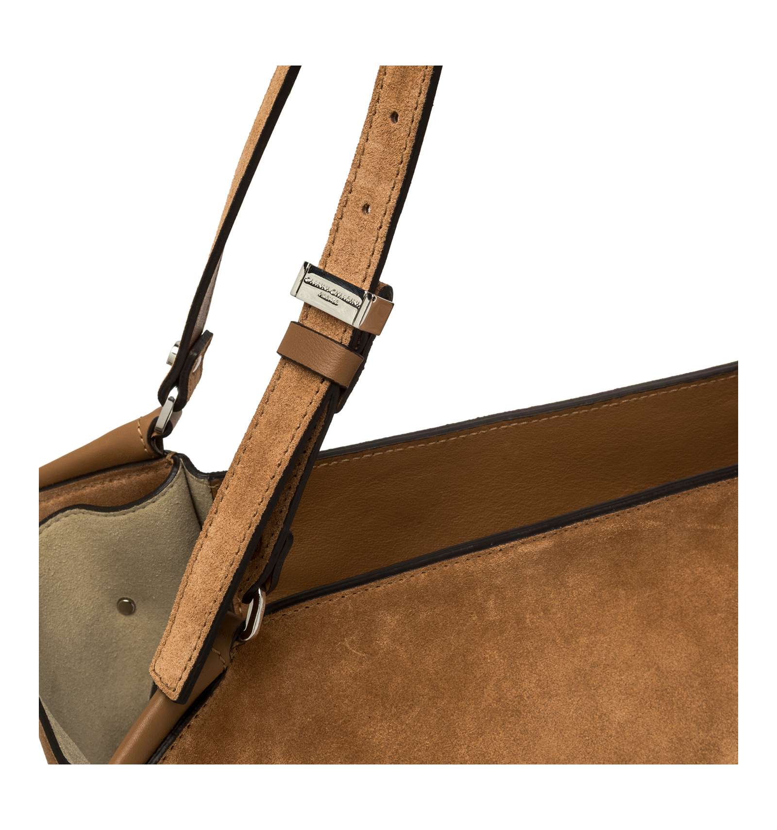 Bloom is a new tote bag, roomy and practical, defined by its tulip-inspired silhouette. Made from suede, it is adorned with contrasting decorative stitching that enhances its style. Refined metal details add a touch of shine, making it the perfect accessory for any occasion. Size: 50x27x18 cm.