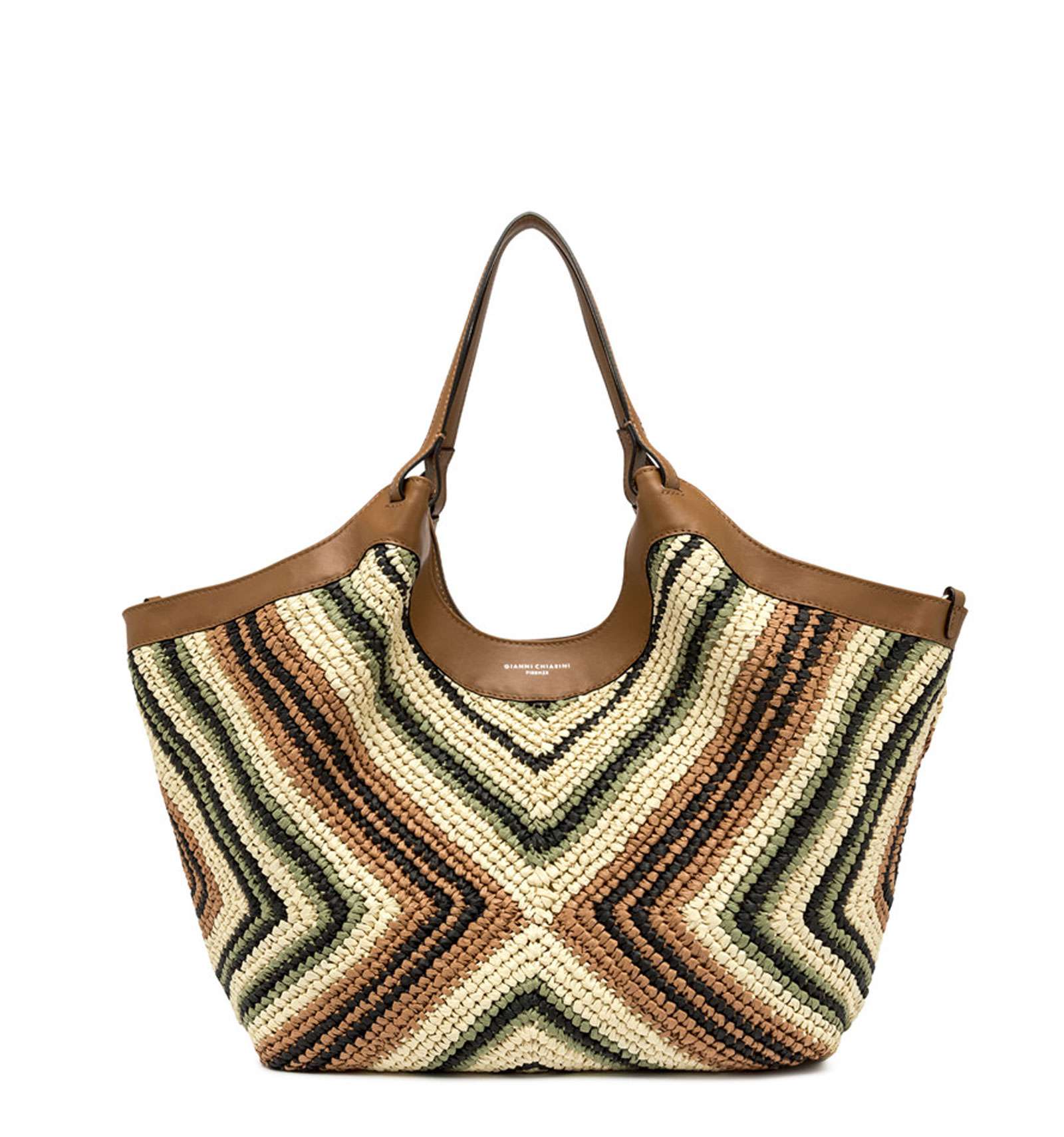 The iconic Dua bag, crafted from woven straw, stands out for its unique texture. It features an unlined single compartment, top profiles in leather and color matching double handles. Practical and essential, it is perfect to stylishly enhance any look. Equipped with a practical clutch with zip closure. Size: 34x38x16 cm.