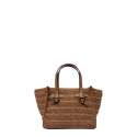 Miss Marcella by Gianni Chiarini Firenze is an accessory with a light and natural aesthetic, perfect for completing seasonal looks. Made of straw-effect raffia for a fresh and naturally summery look. Light and contemporary, it’s embellished with elegant leather finishes. Compact and versatile, it can be carried by hand or worn cross-body thanks to the slim matching strap. Size: 19x15x10 cm.