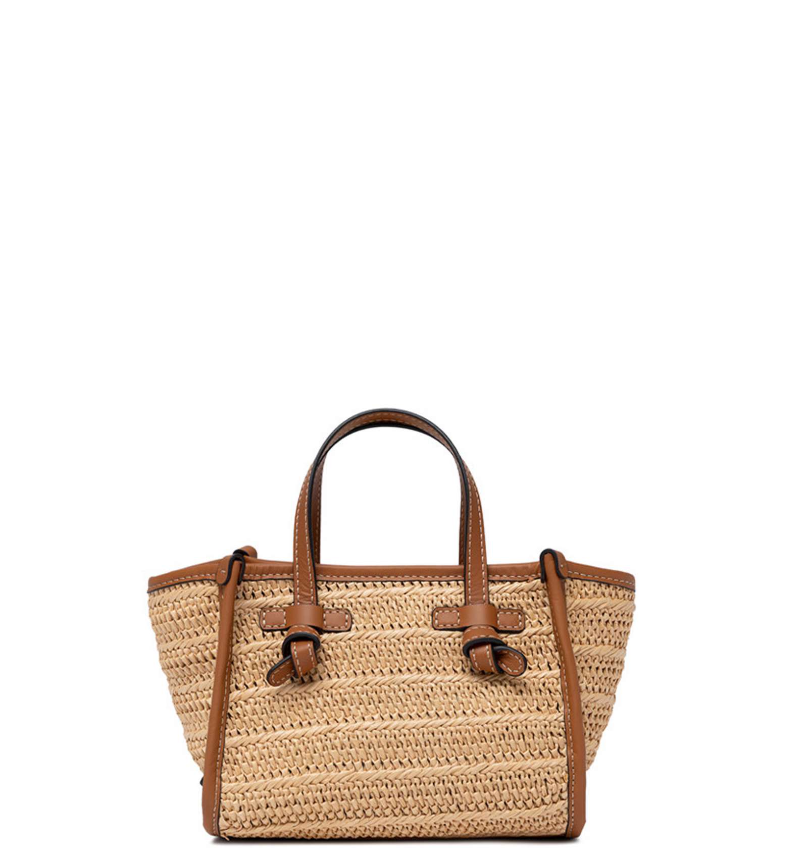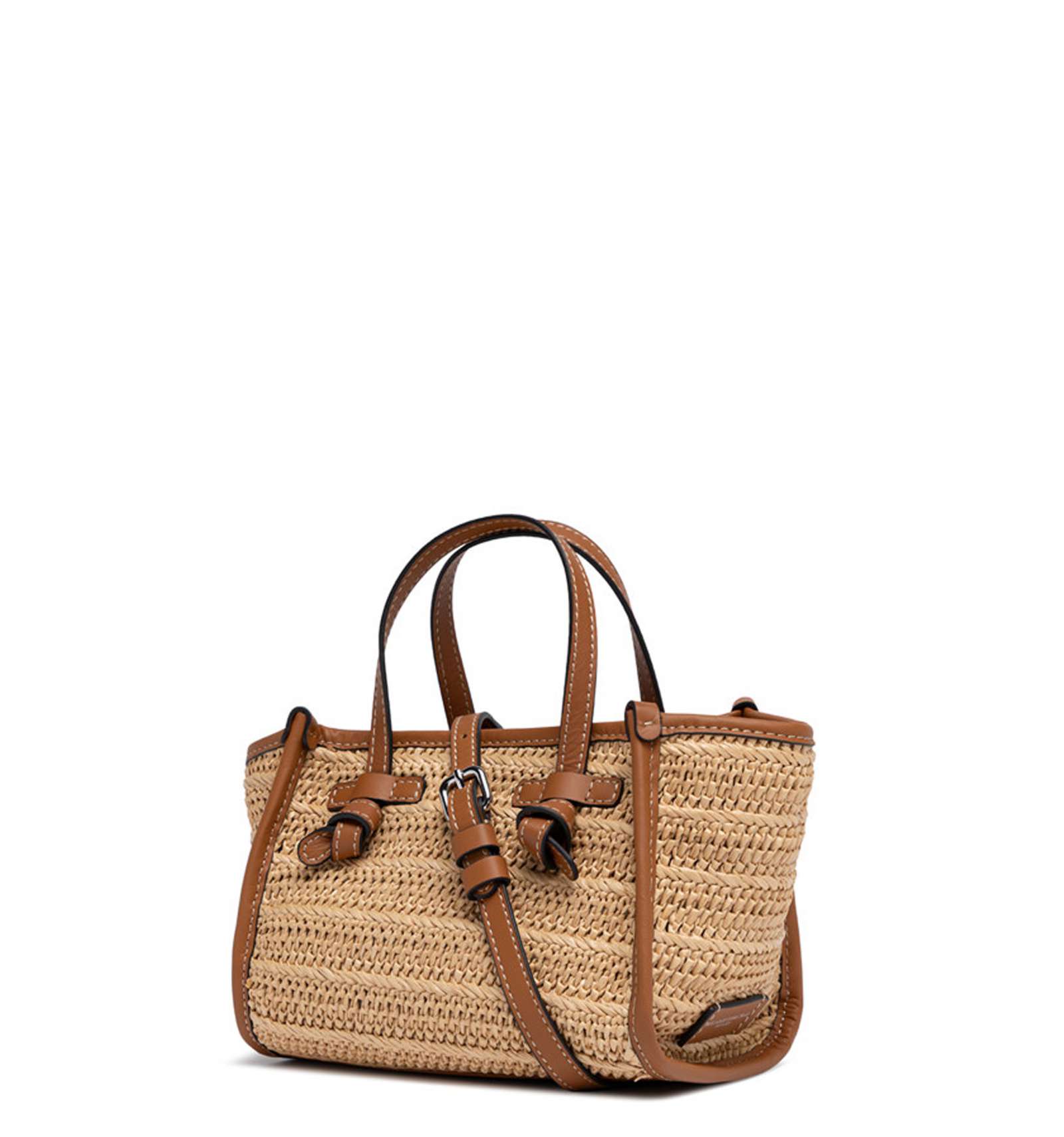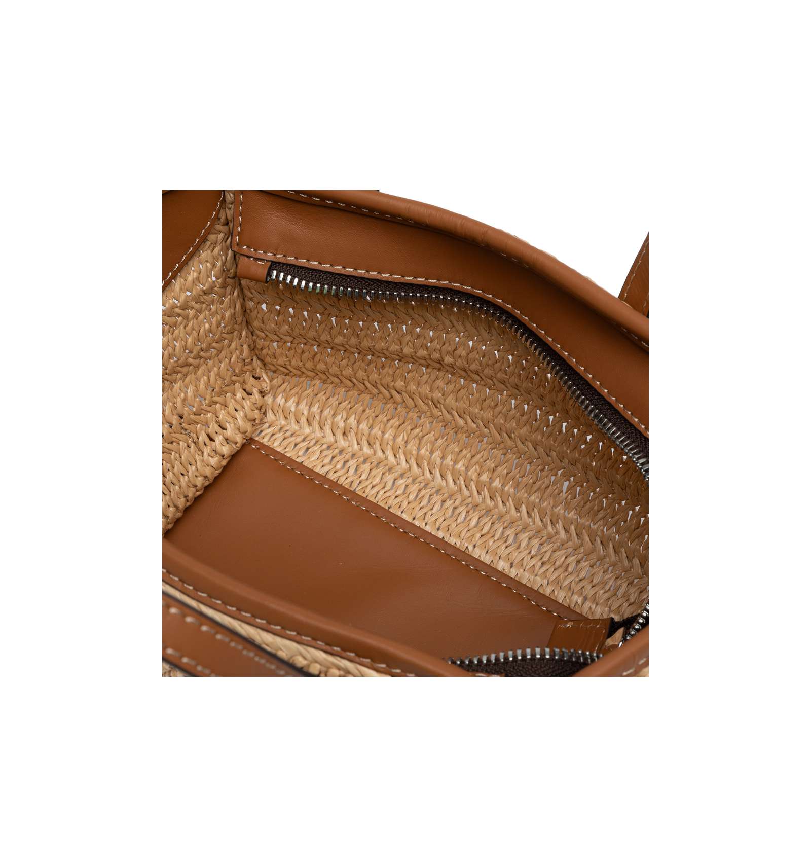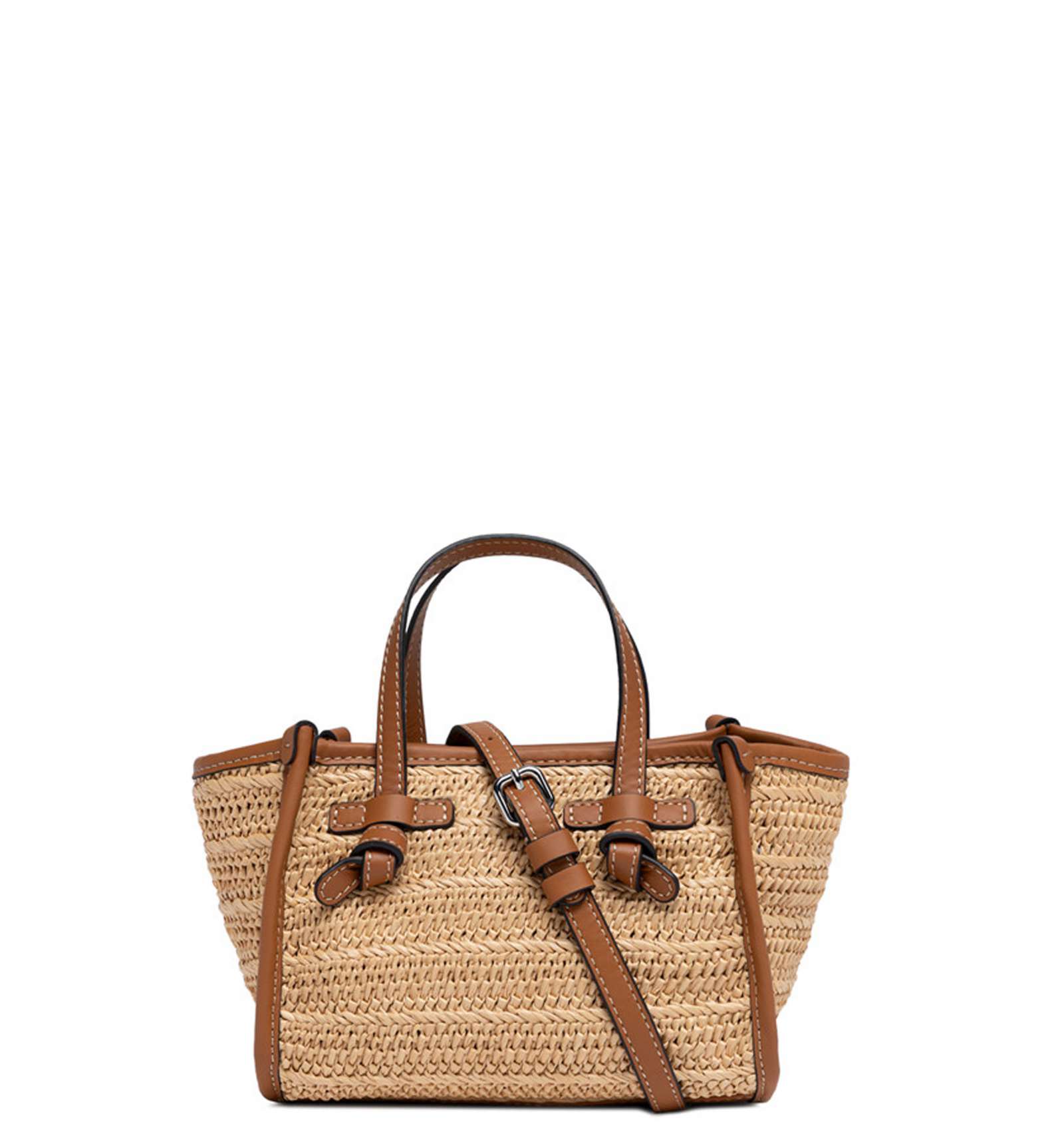 Miss Marcella by Gianni Chiarini Firenze is an accessory with a light and natural aesthetic, perfect for completing seasonal looks. Made of straw-effect raffia for a fresh and naturally summery look. Light and contemporary, it’s embellished with elegant leather finishes. Compact and versatile, it can be carried by hand or worn cross-body thanks to the slim matching strap. Size: 19x15x10 cm.