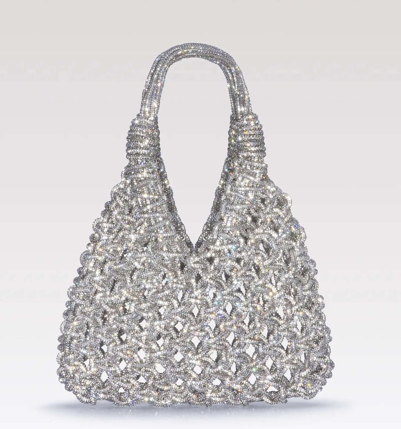 The Vannifique bag is the signature accessory of the Hibourama collections. Entirely handmade according to a fine weaving technique, this bag blends day and evening, becoming a versatile accessory of great style and sophistication. The yarn covered with precious crystals illuminates the model.
