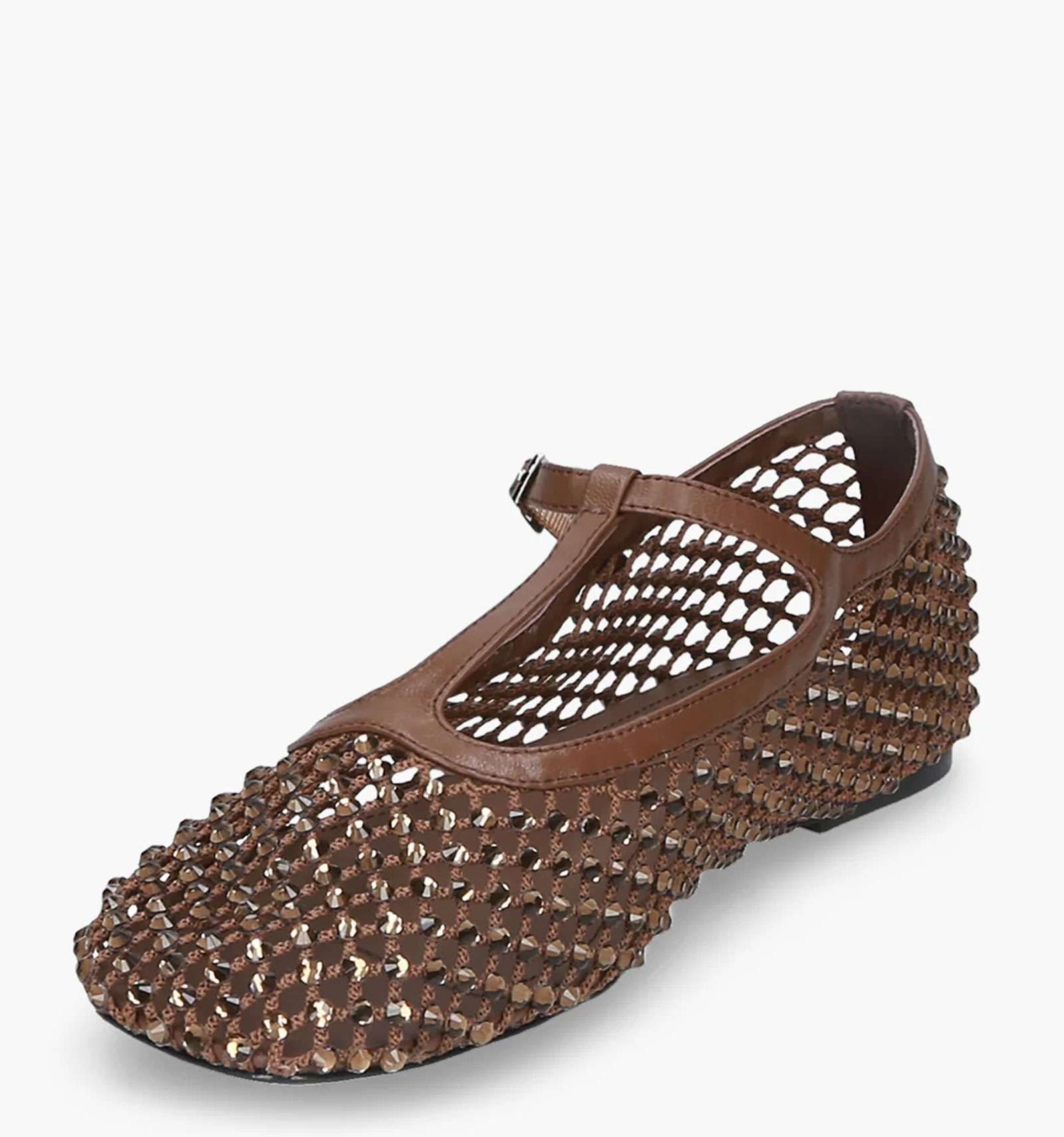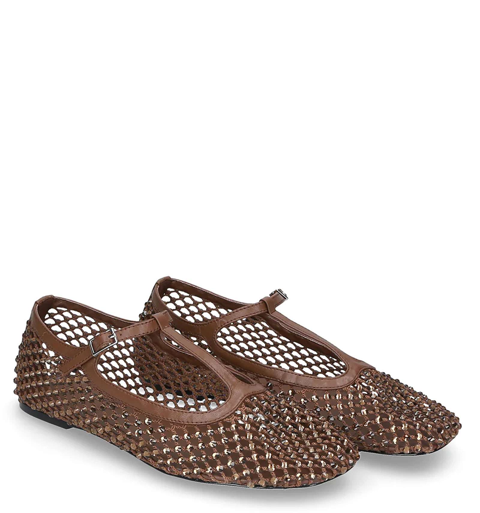 Ballerina donna “T-Bar” All Over Strass: un richiamo rétro con un’attitudine ultra moderna. Un design che valorizza il cinturino a T come dettaglio grafico, mentre la luminosità totale trasforma la ballerina in un pezzo statement.