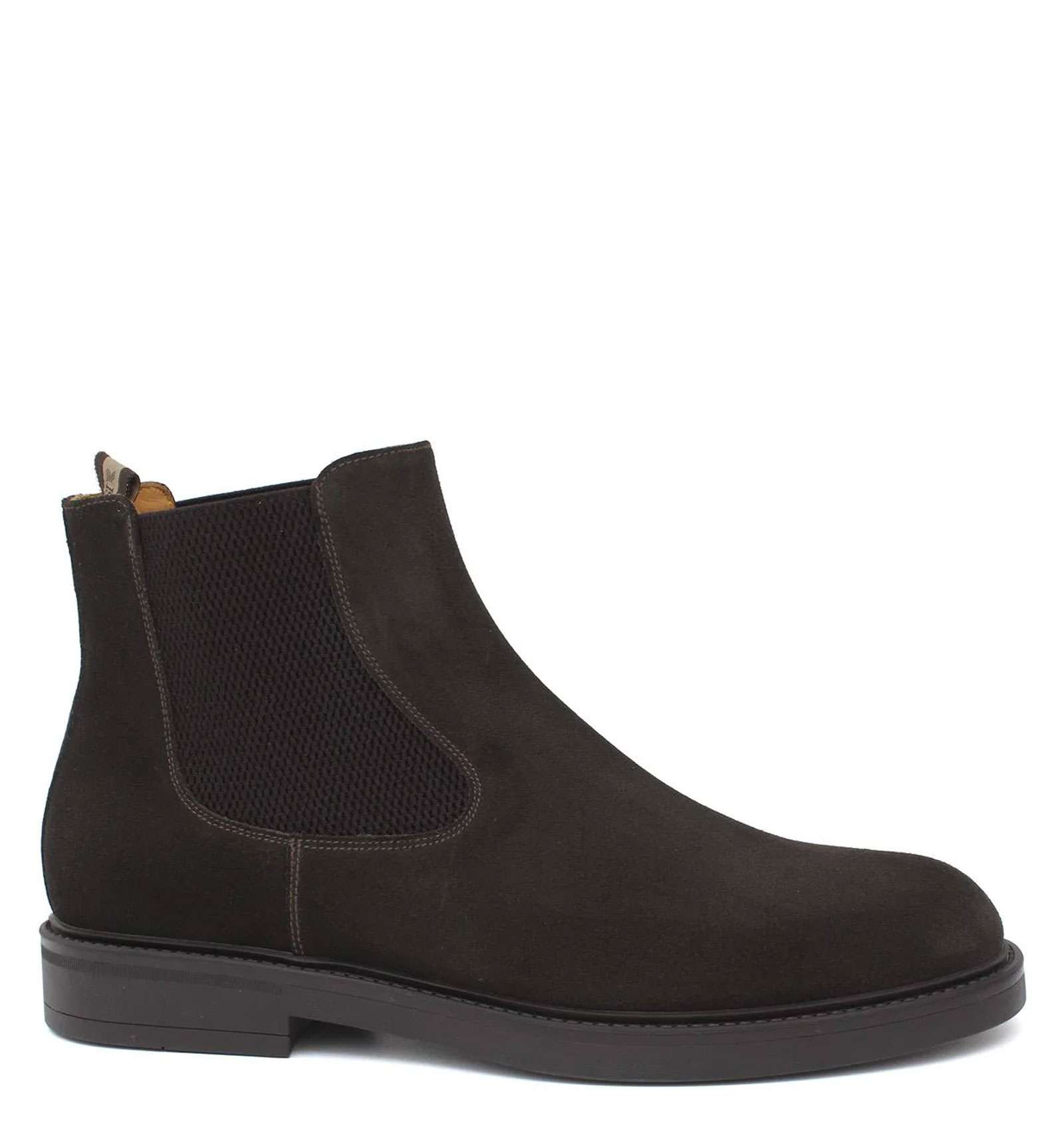 Stivaletto beatles lavorazione blake in camoscio rasato idrorepellente nel colore testa di moro, fodera in vitello color cuoio, fondo in gomma cuicito e sottopiede confort estraibile
