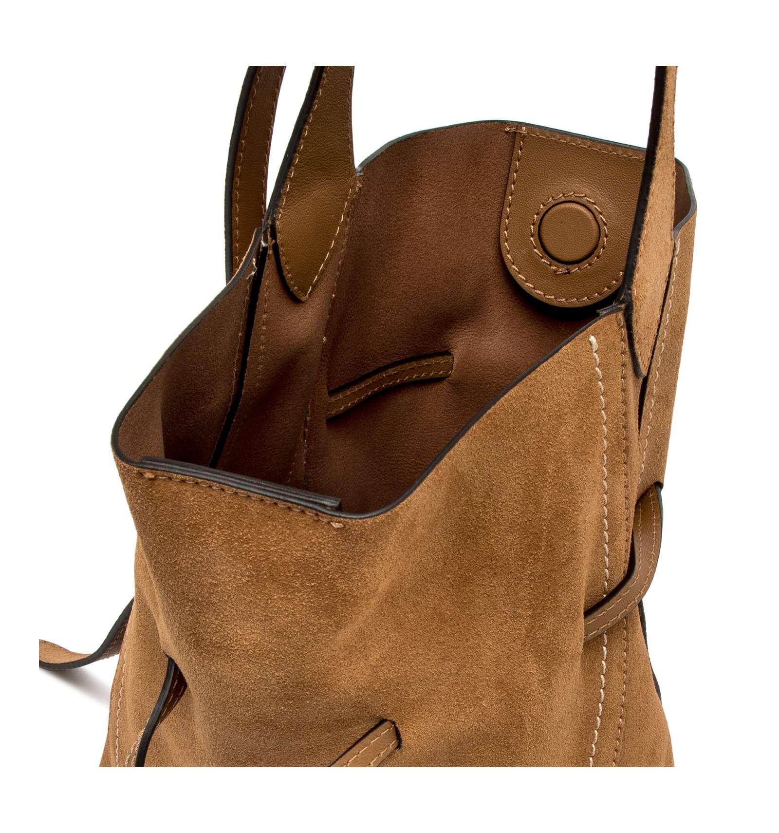 Sienna è la nuova linea by Gianni Chiarini Firenze, caratterizzata da una forma morbida ma femminile, perfetta per un look chic, al contempo casual. Realizzata in pelle scamosciata, presenta impunture a contrasto che ne esaltano la shape. Dotata di un monoscomparto e una chiusura con magnete, è arricchita da dettagli iconici in metallo, come il passante gemello logato e i finalini. Ideale da indossare a mano o a spalla grazie alla tracolla regolabile inclusa. Dimensioni: 23x27x10 cm.