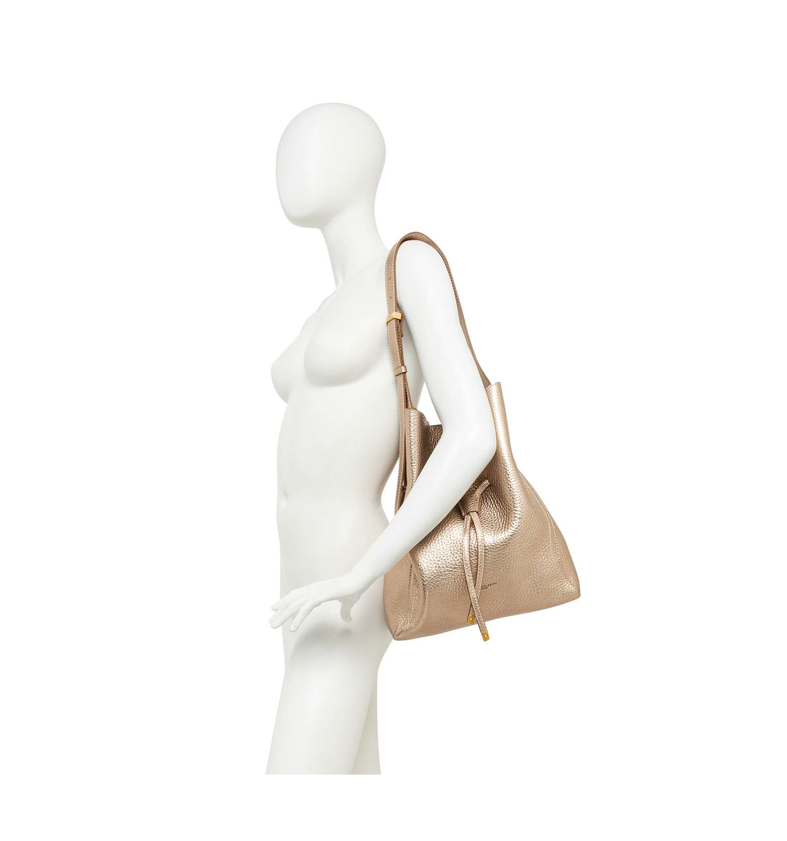 Sienna è la nuova borsa firmata Gianni Chiarini Firenze, caratterizzata da una silhouette morbida e femminile, perfetta per completare con stile sia i look casual che quelli più sofisticati. Realizzata in pelle double dalla grana maxi, è rifinita con impunture a contrasto che valorizzano le sue linee. Presenta un monoscomparto con chiusura a magnete ed è impreziosita da dettagli iconici in metallo, come il passante gemello logato e i finalini. Dotata di una pratica pochette con zip di chiusura. Dimensioni: 30x34x11 cm.