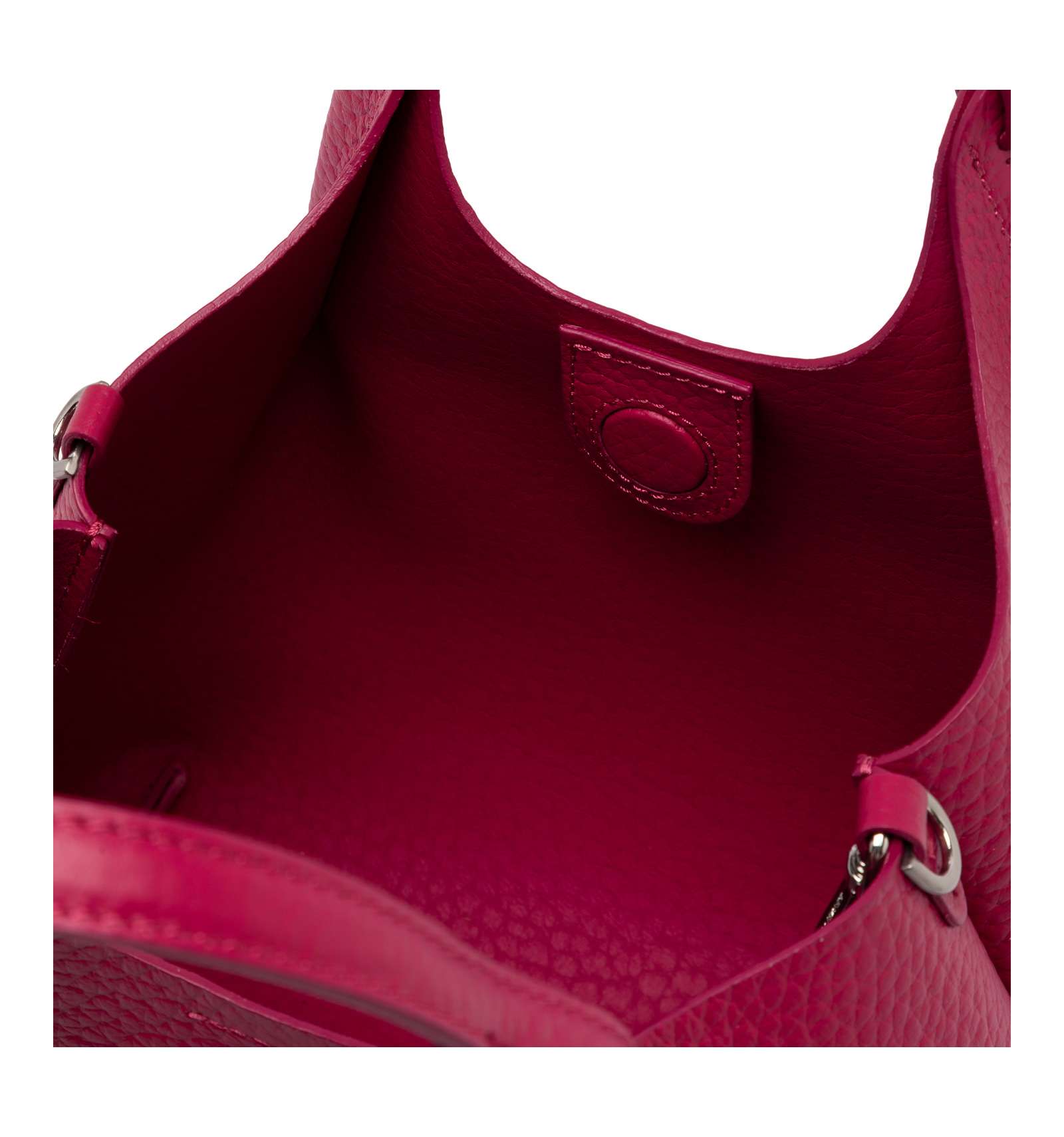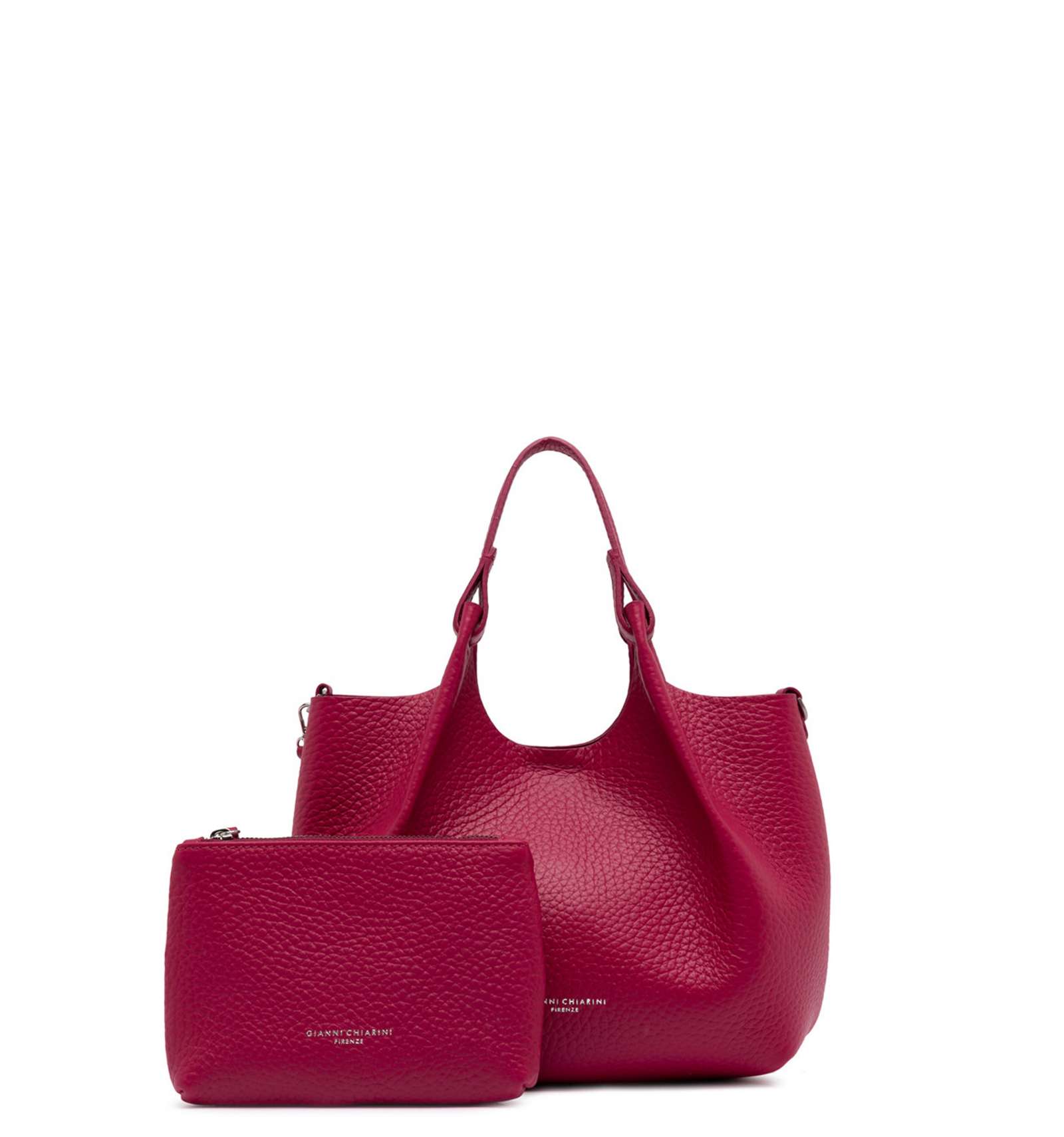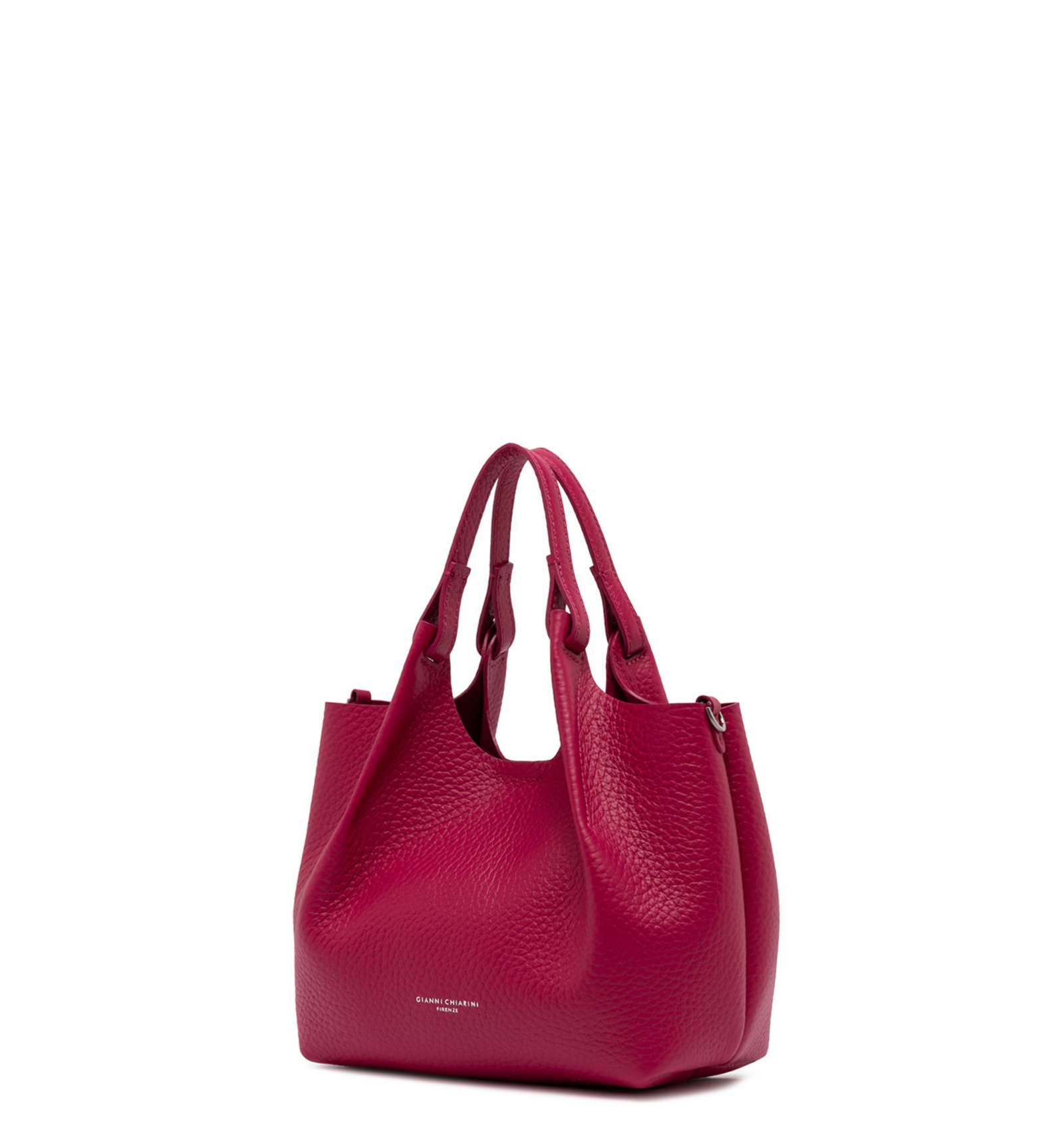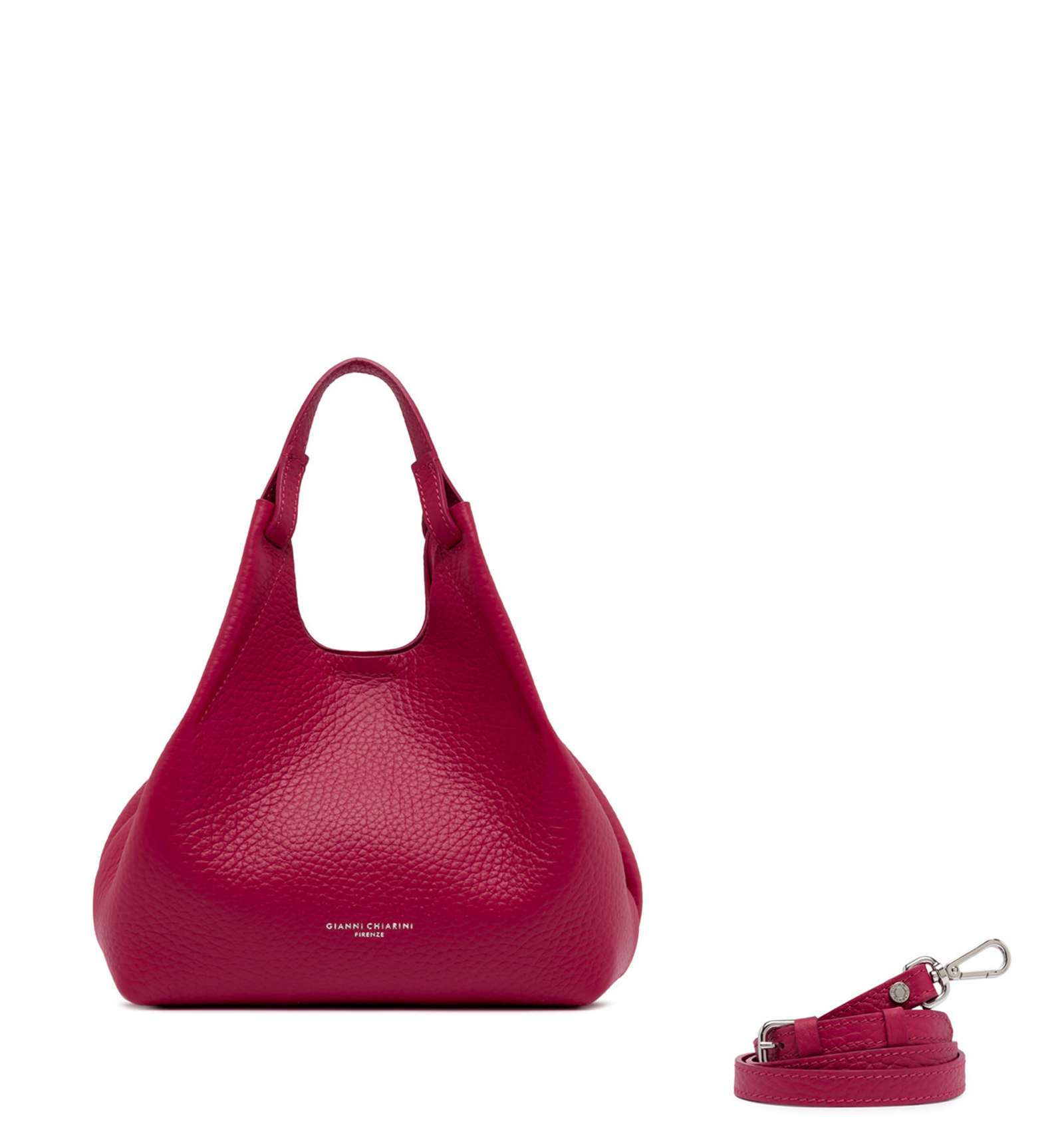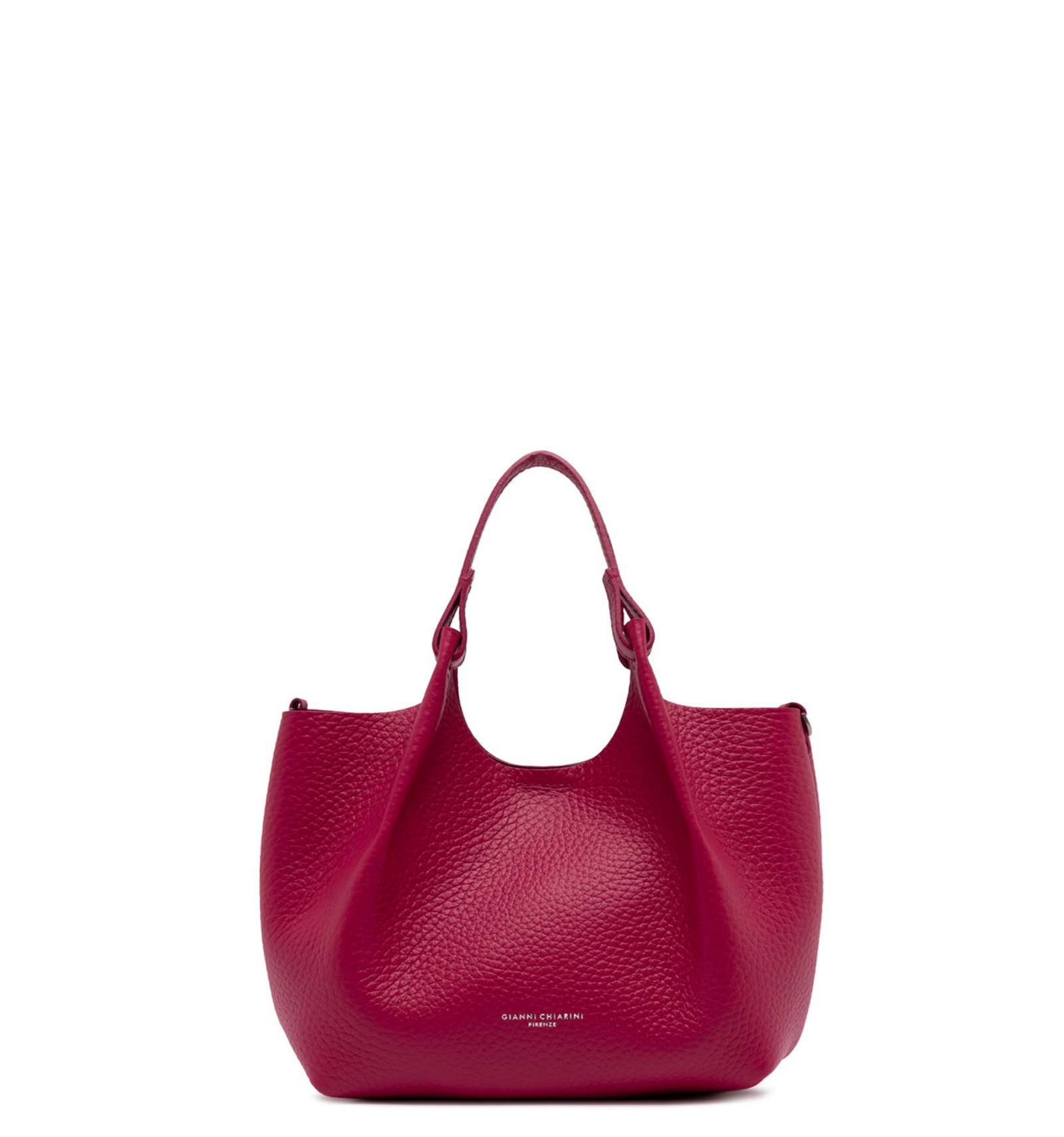L'icona del brand, la borsa DUA, è realizzata in pelle bubble double, caratterizzata da una texture unica. Dotata di un monoscomparto sfoderato, presenta profili superiori in pelle martellata e doppi manici in tono. Pratica ed essenziale, è perfetta per completare ogni look con stile. Può essere portata a mano o a spalla.