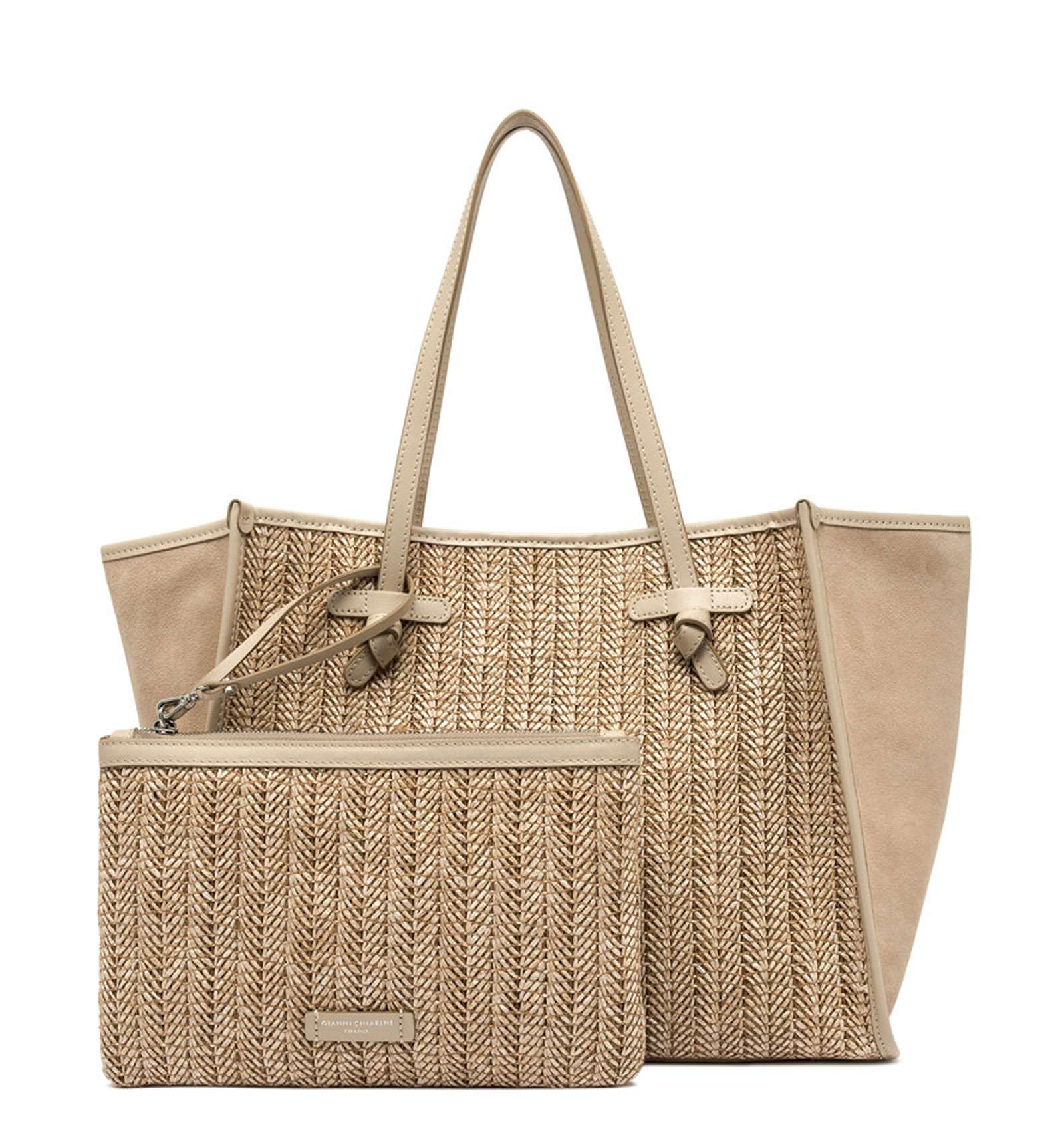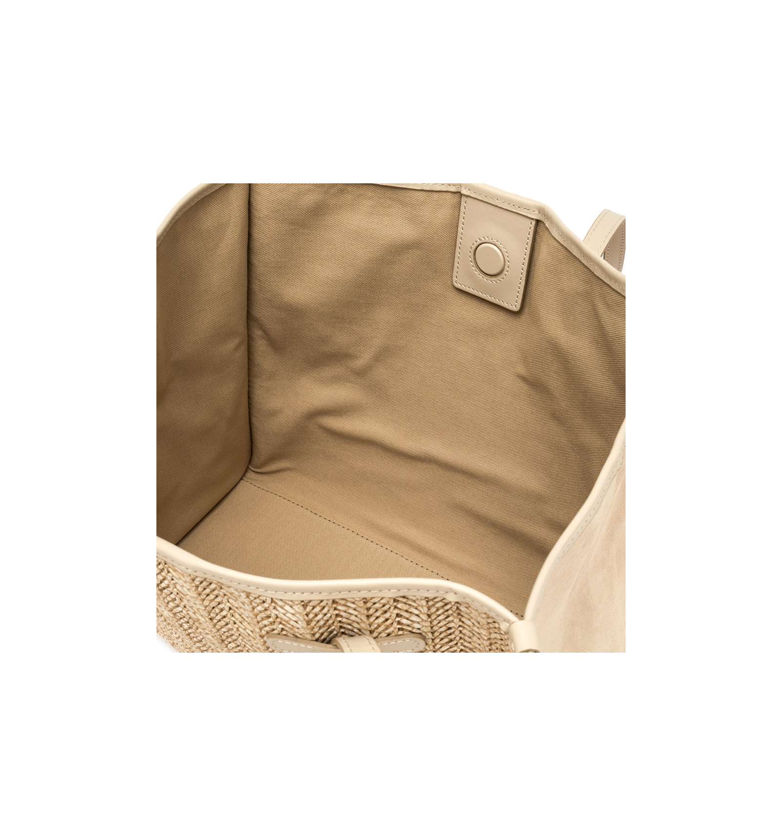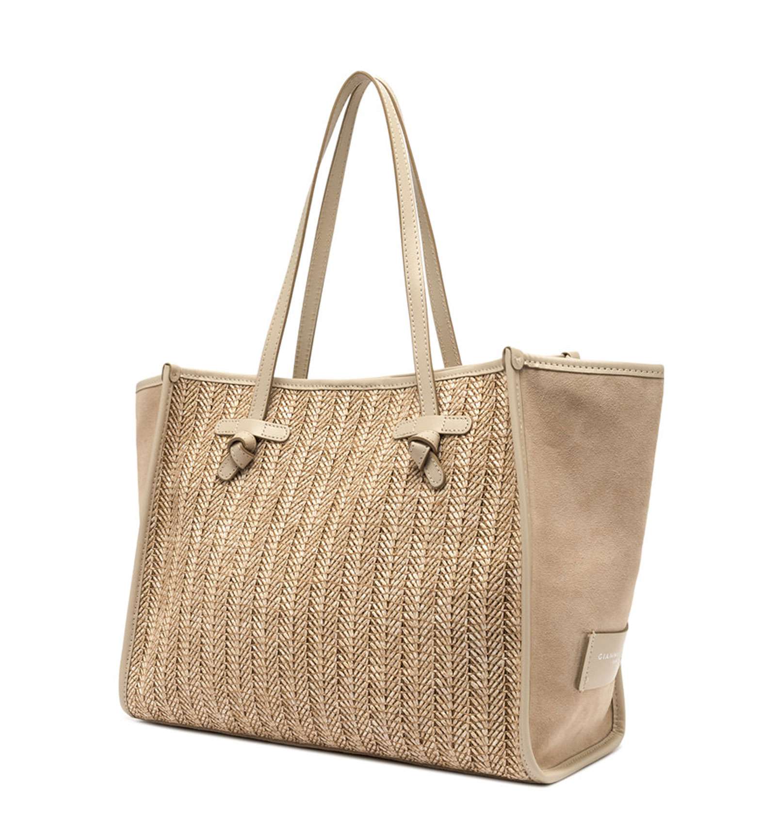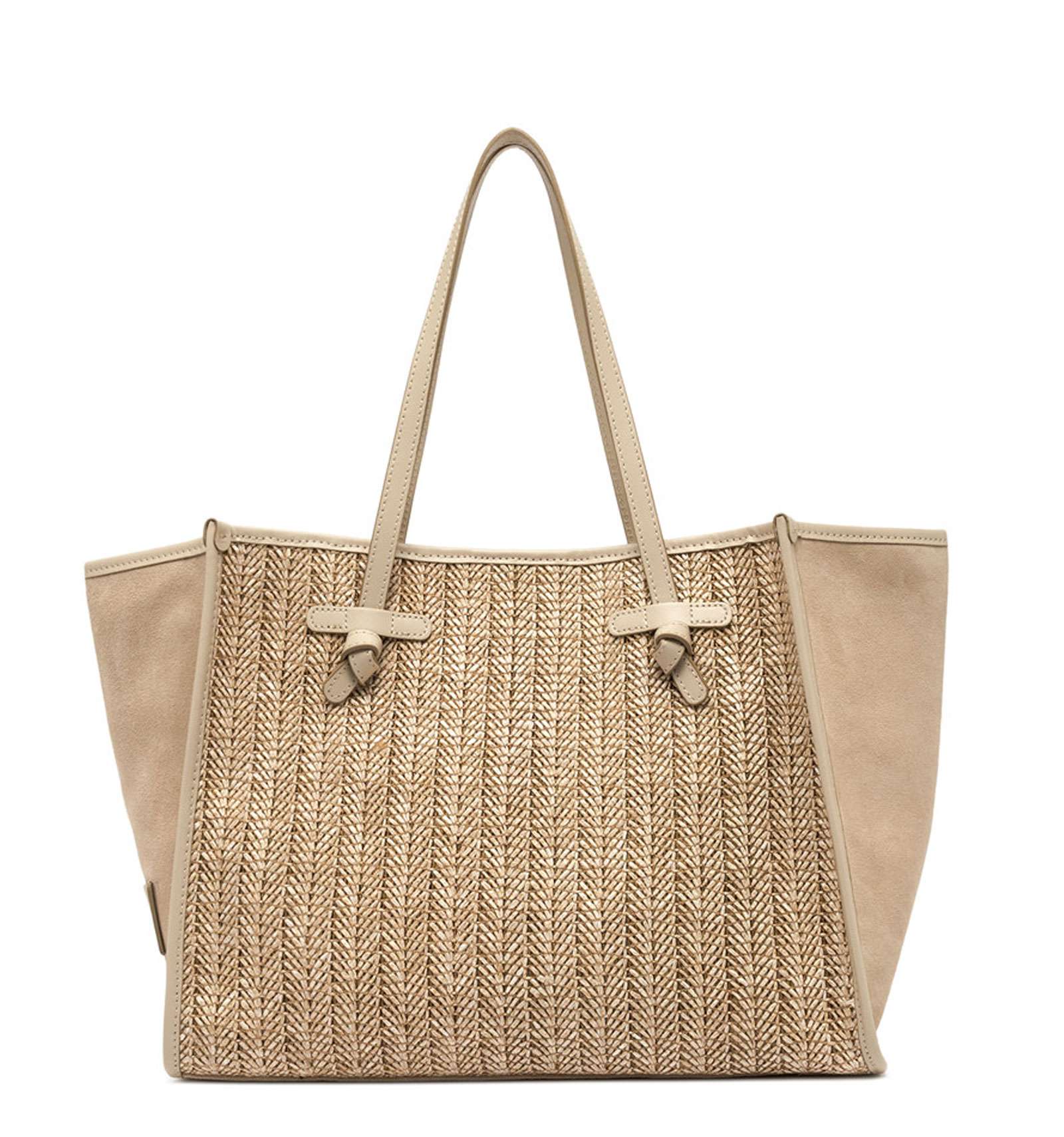 La shopping Marcella by Gianni Chiarini Firenze è realizzata in paglia spigata che le conferisce un look fresco, perfetta per le giornate estive in città e in vacanza, è dotata di manici in pelle e una comoda chiusura con magnete, ideale per l'uso quotidiano. La pochette interna in pelle aggiunge praticità e versatilità. Dimensioni: 38x31x16 cm.