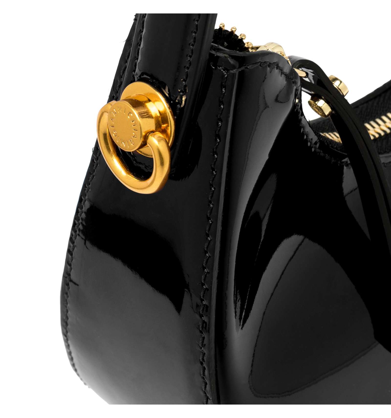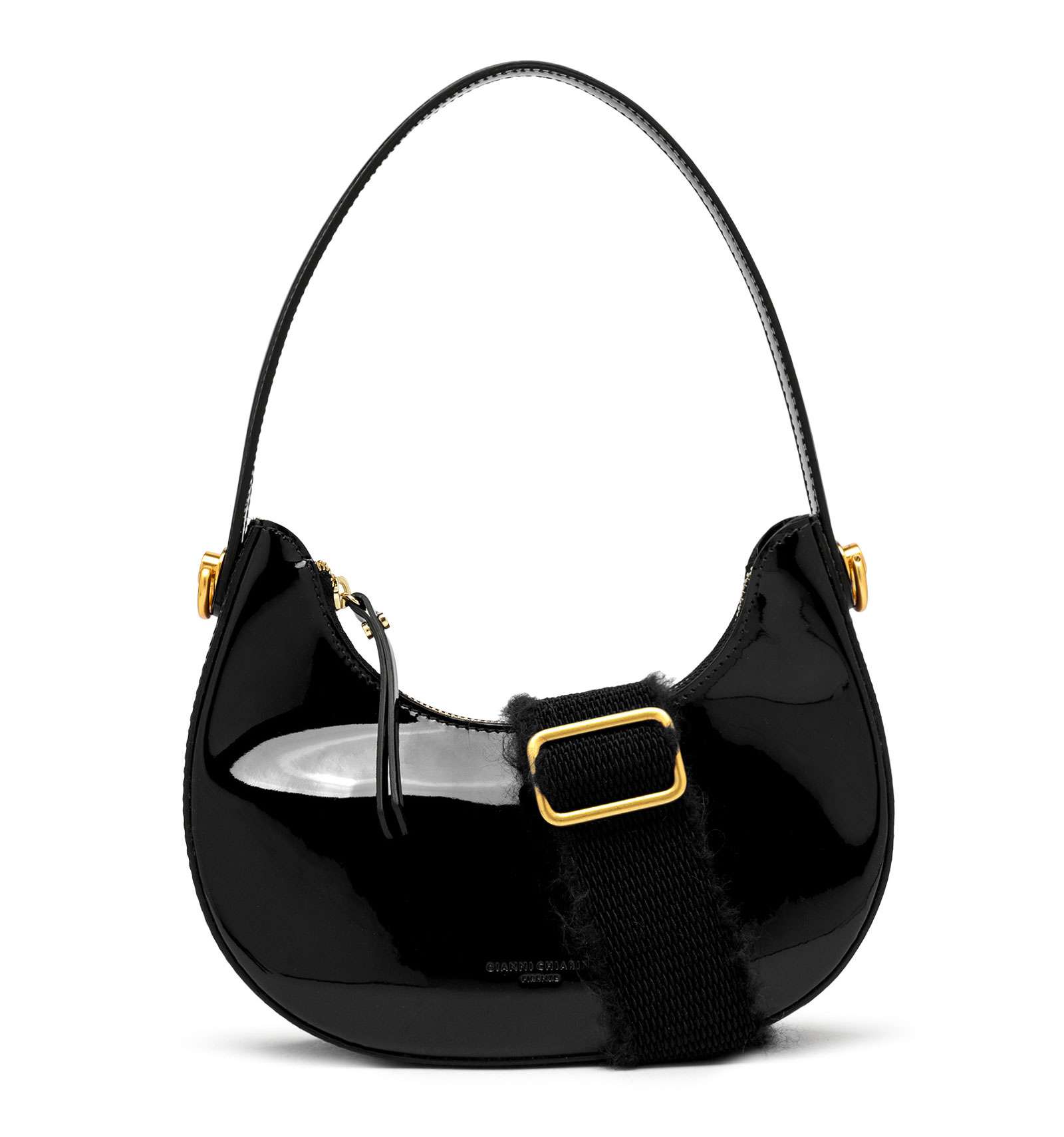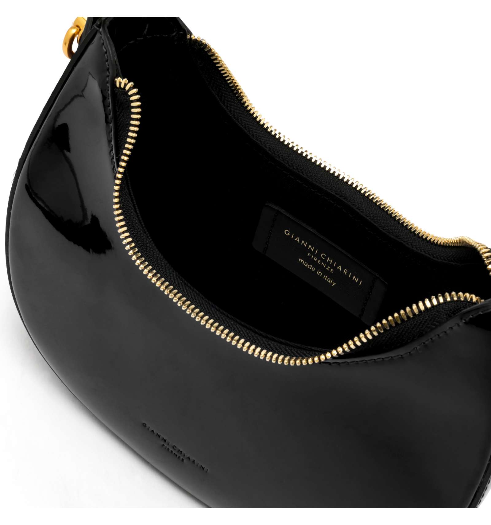 Borsa a spalla "Blanche" Gianni Chiarini in vernice manico superiore, galvanica oro, chiusura superiore con zip, scomparto unico, tracolla regolabile e removibile 90cm circa, tasca interna, logo impresso sul fronte, made in Italy , dustbag inclusa,