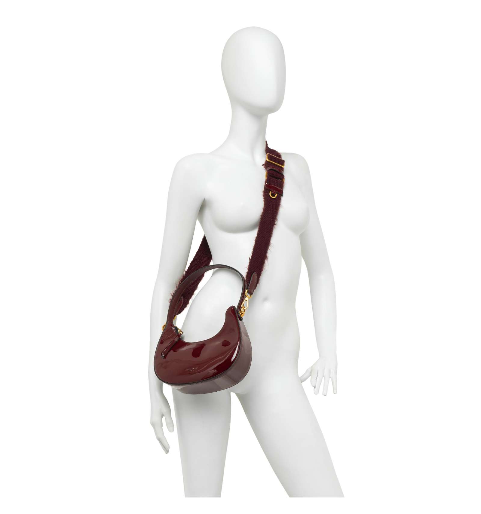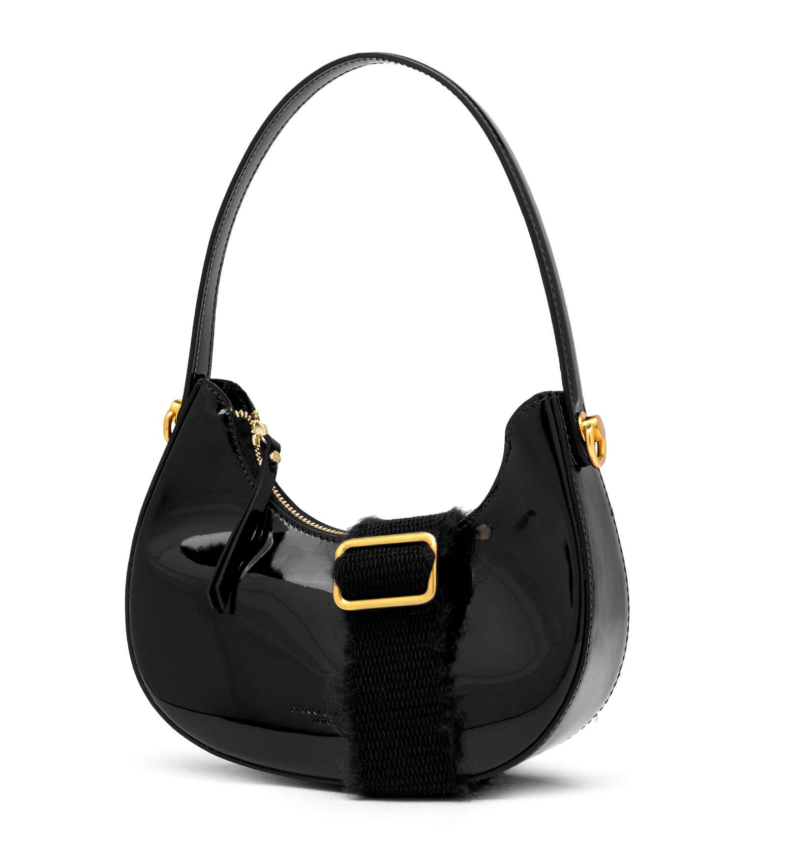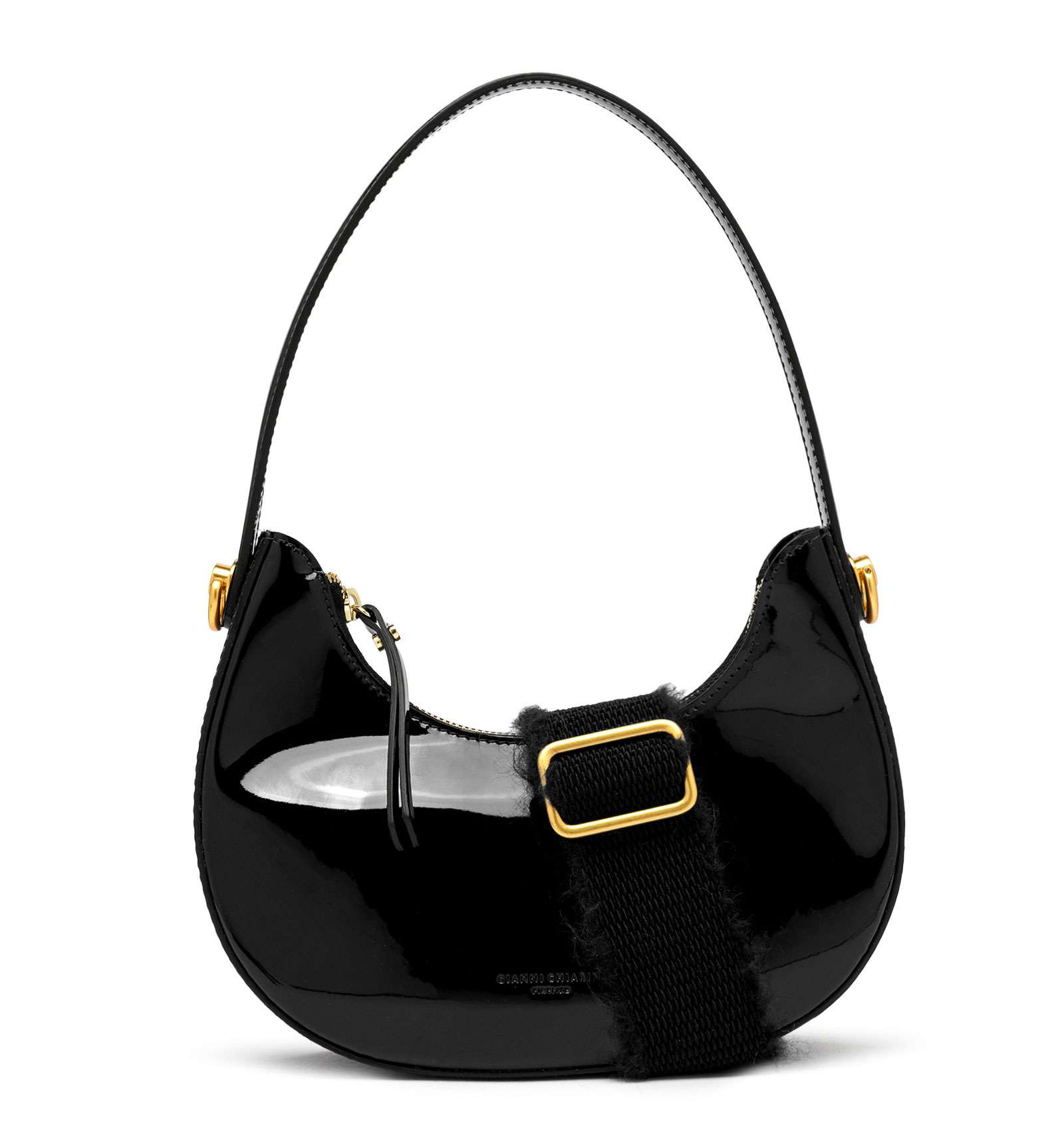 Borsa a spalla "Blanche" Gianni Chiarini in vernice manico superiore, galvanica oro, chiusura superiore con zip, scomparto unico, tracolla regolabile e removibile 90cm circa, tasca interna, logo impresso sul fronte, made in Italy , dustbag inclusa,