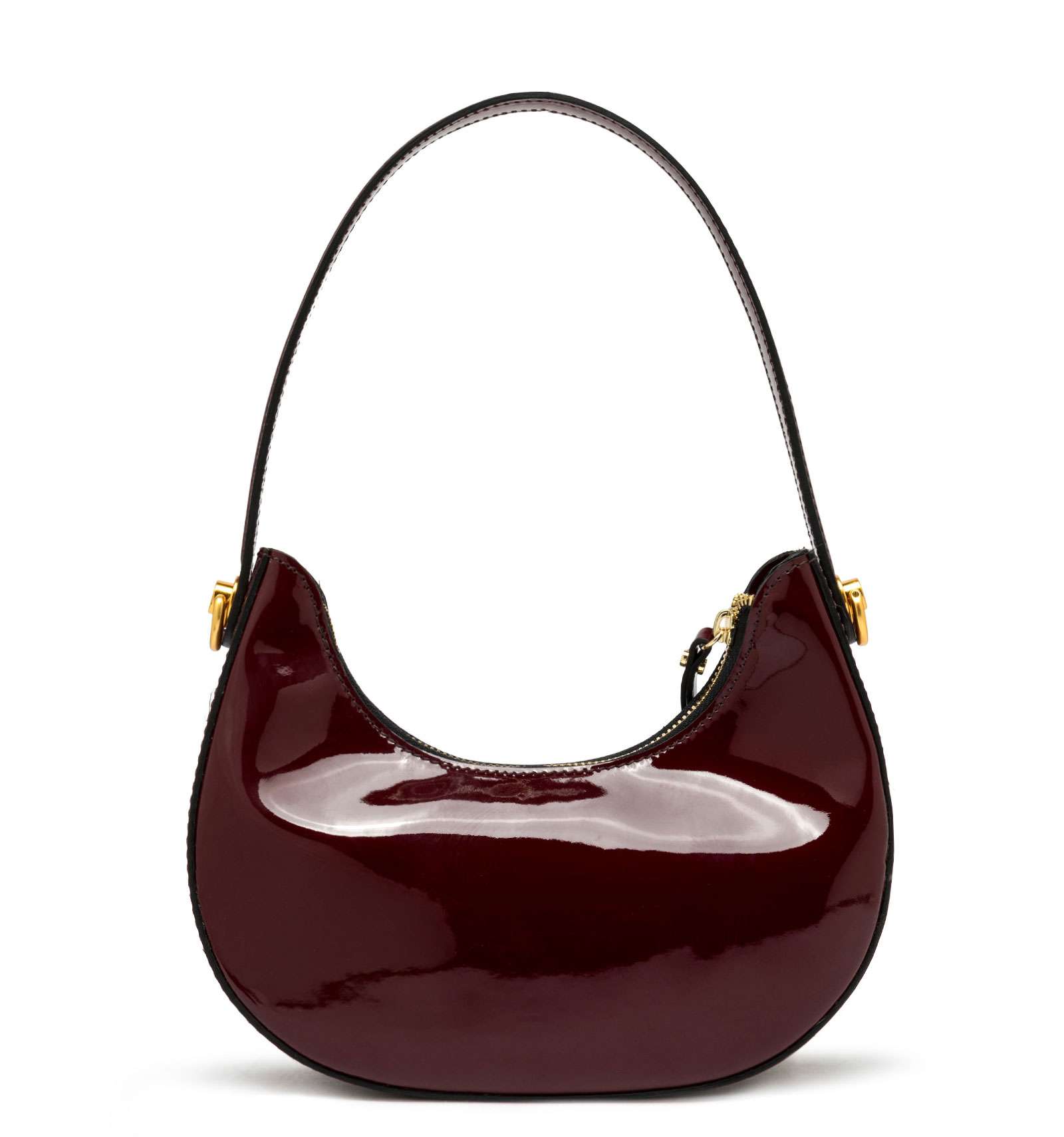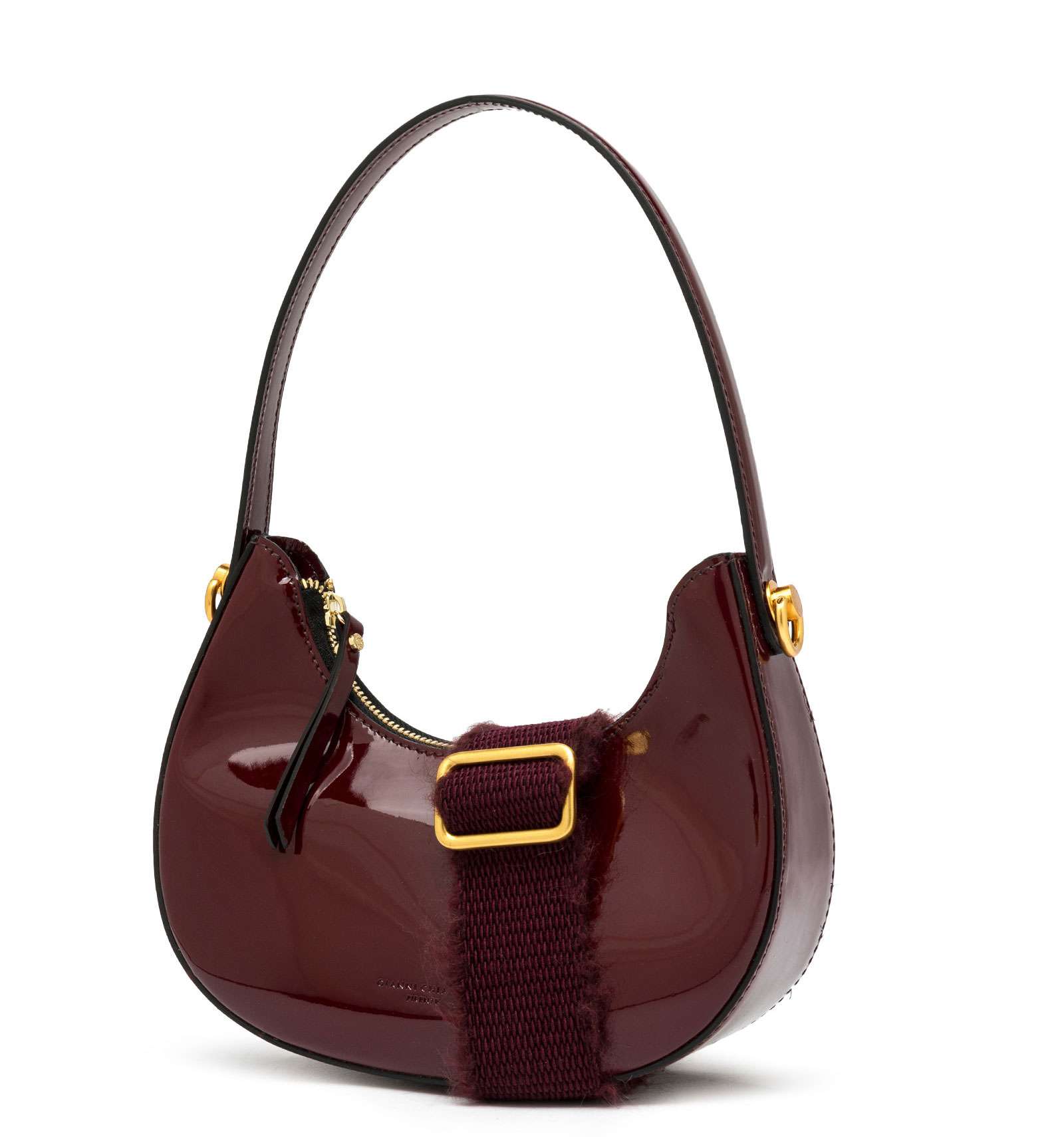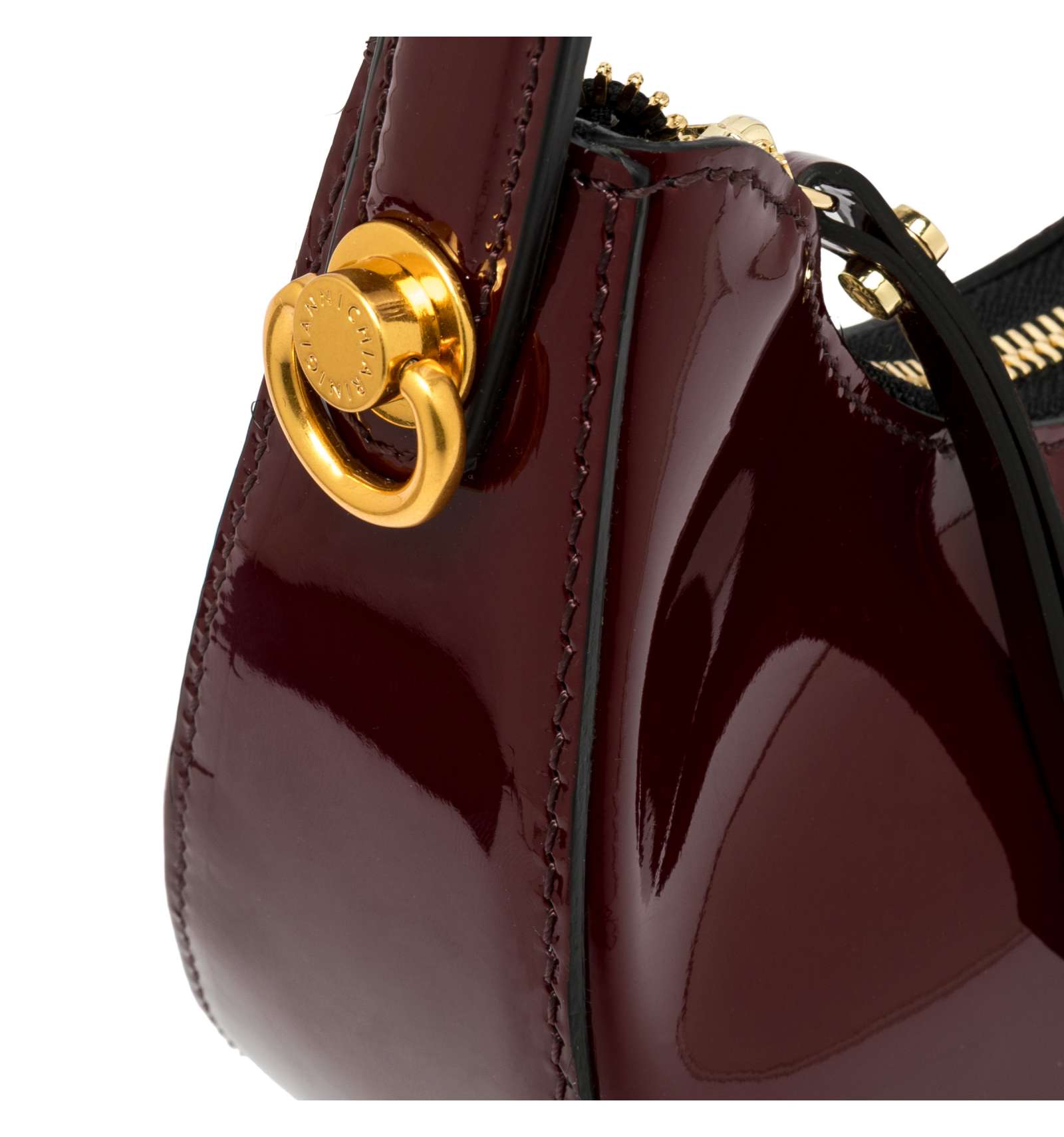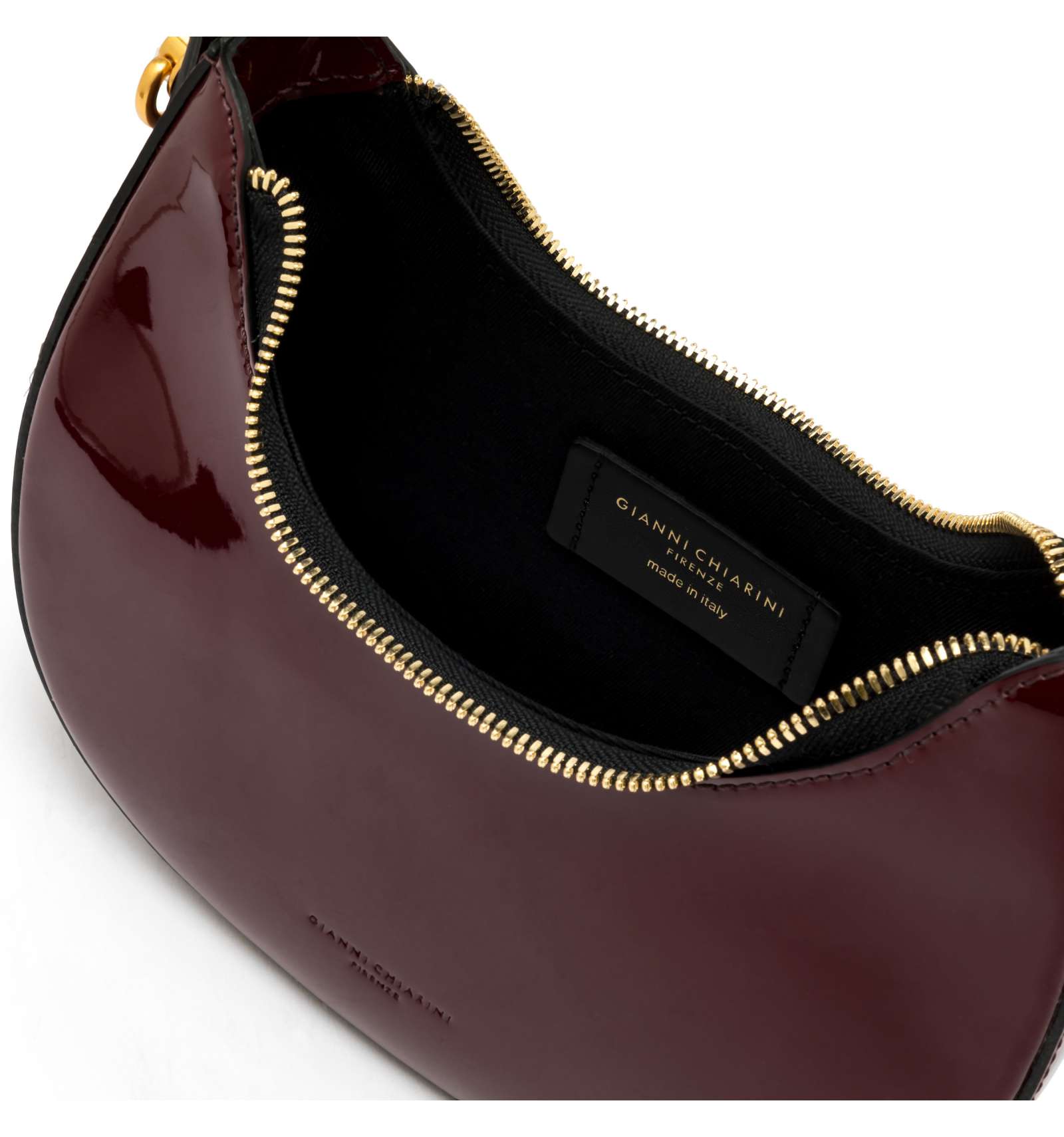 Borsa a spalla "Blanche" Gianni Chiarini in vernice manico superiore, galvanica oro, chiusura superiore con zip, scomparto unico, tracolla regolabile e removibile 90cm circa, tasca interna, logo impresso sul fronte, made in Italy , dustbag inclusa,