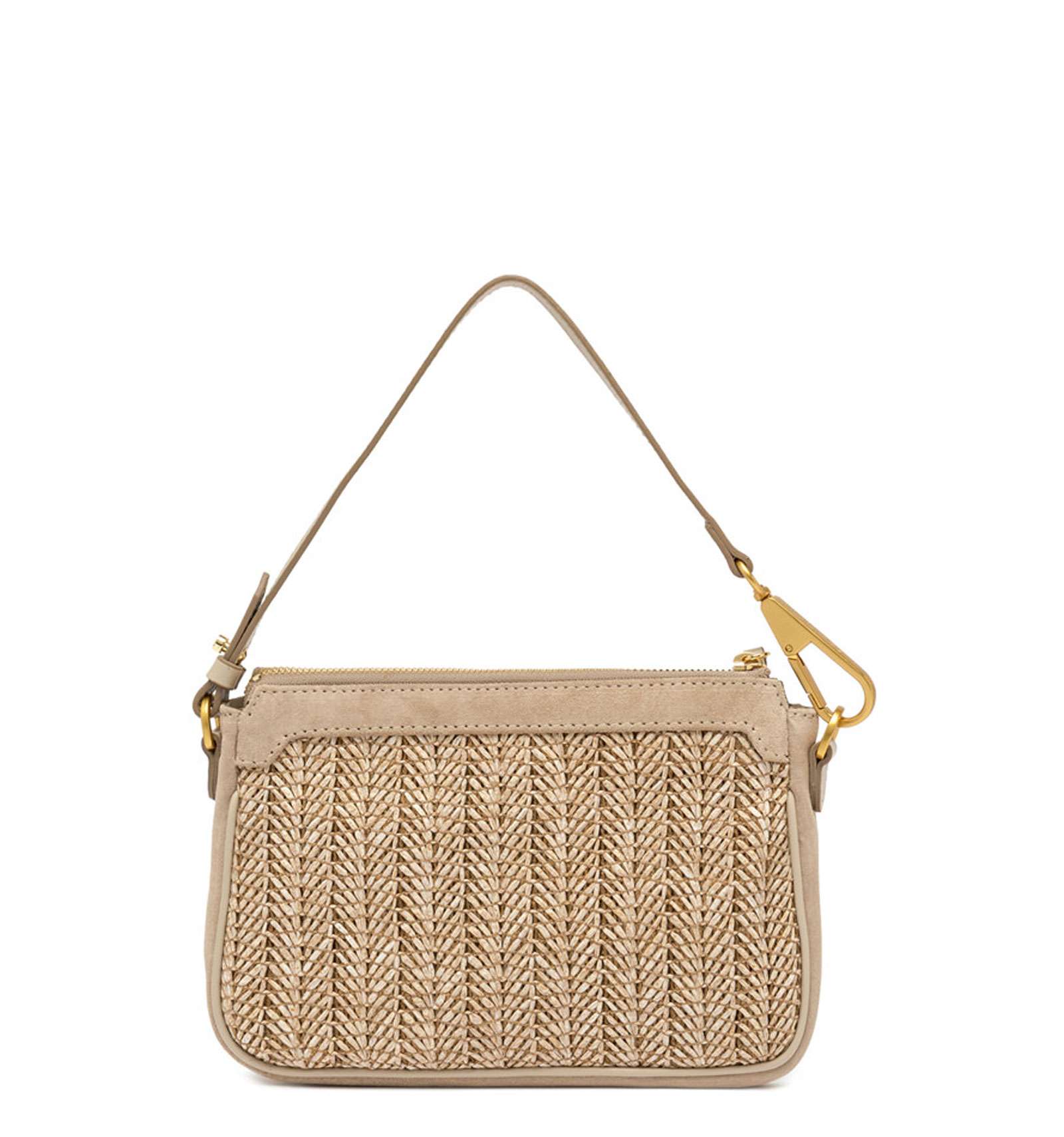 Semplice ed elegante, la borsa Brooke by Gianni Chiarini Firenze è l'accessorio ideale per chi desidera un tocco squisitamente estivo senza rinunciare alla praticità. Realizzata in paglia intrecciata, evoca un fascino rustico chic ed è impreziosita da profili in pelle, una chiusura a zip e il dettaglio del moschettone sul manico removibile. Completa di una tracolla aggiuntiva, è perfetta per un utilizzo quotidiano, dal mare alla città. Dimensioni: 23x14x4 cm.