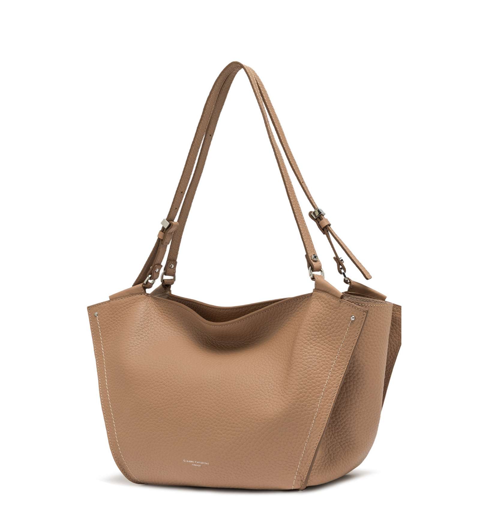 Bloom è un’icona di stile firmata Gianni Chiarini Firenze. Capiente e funzionale, si distingue per la sua elegante silhouette a tulipano. Realizzata in pelle double dalla grana maxi, è impreziosita da una cucitura a contrasto che ne valorizza le linee. I dettagli in metallo completano il design con un tocco luminoso, rendendola l’accessorio perfetto per ogni occasione.