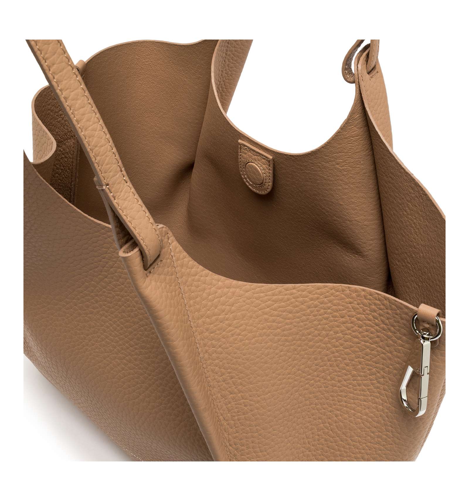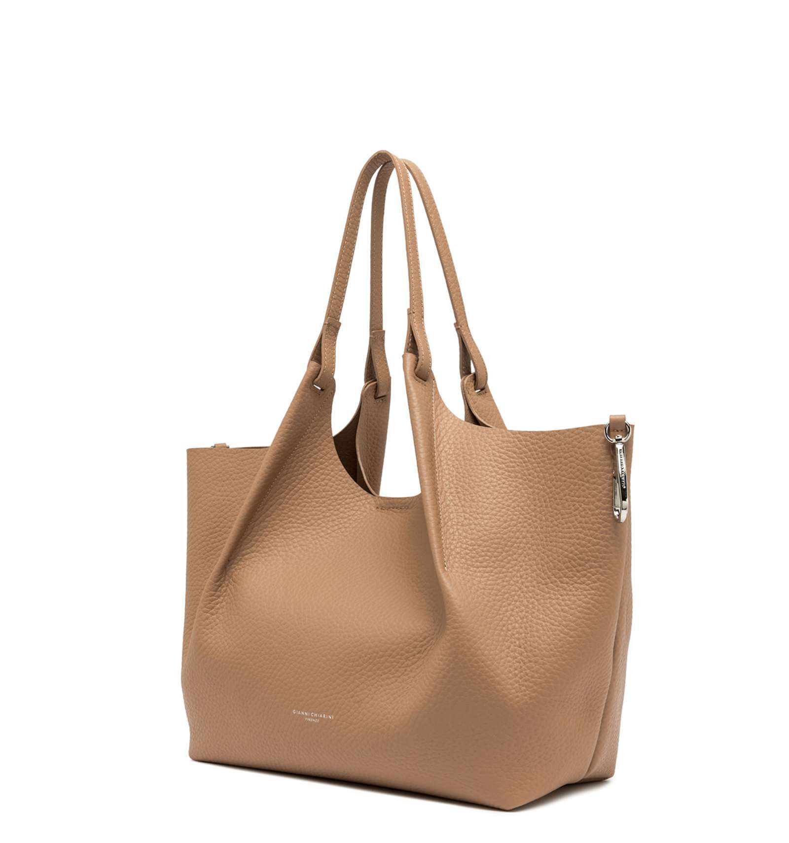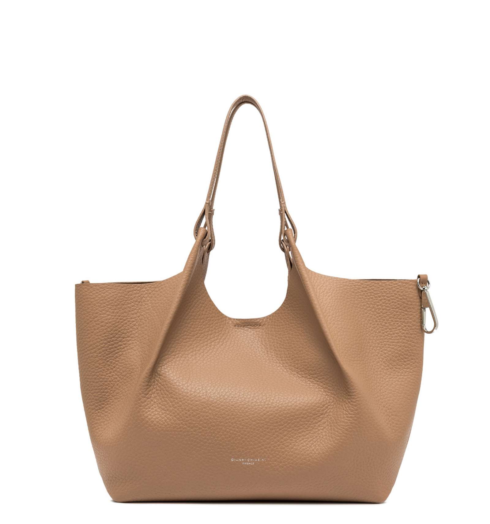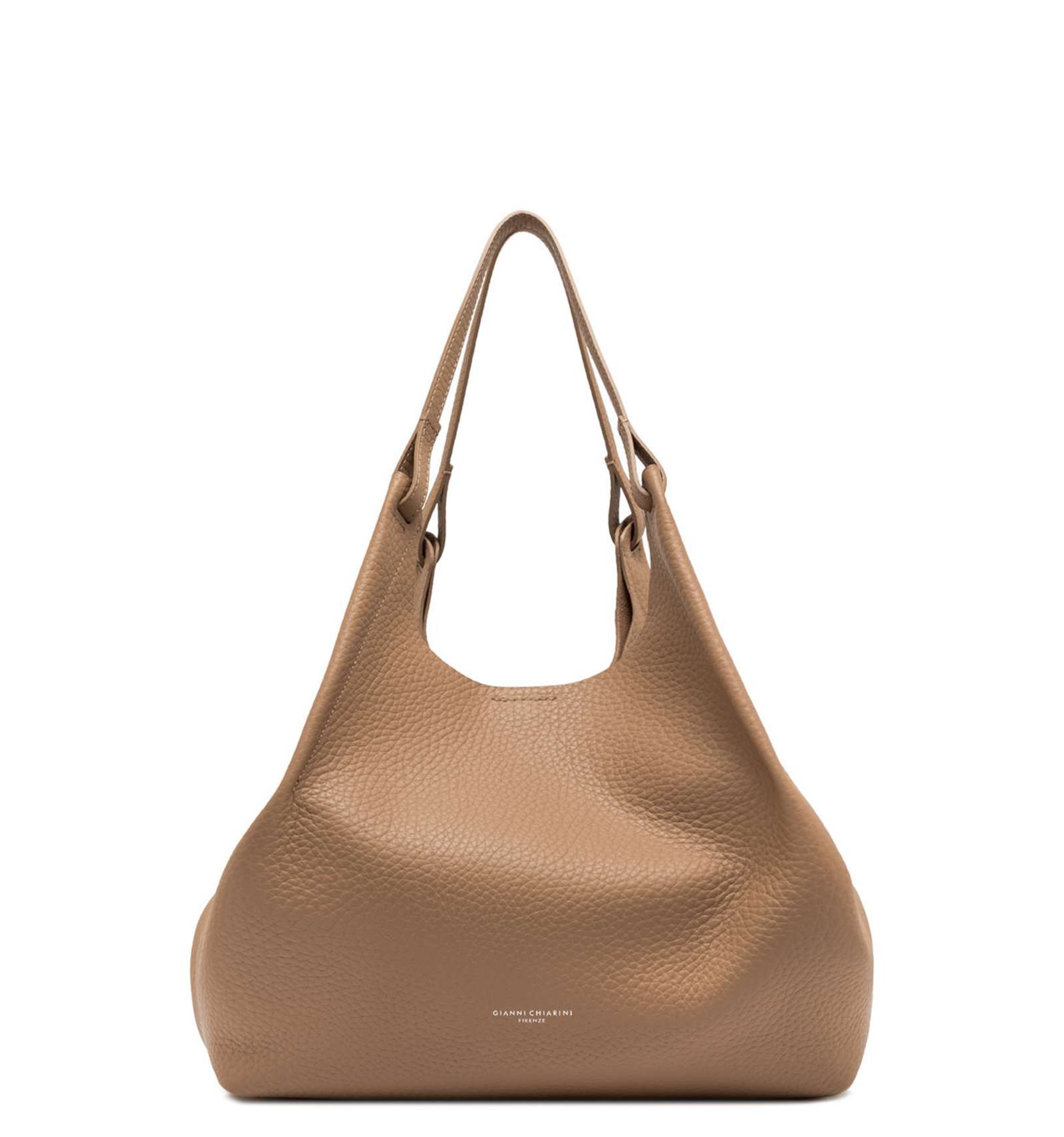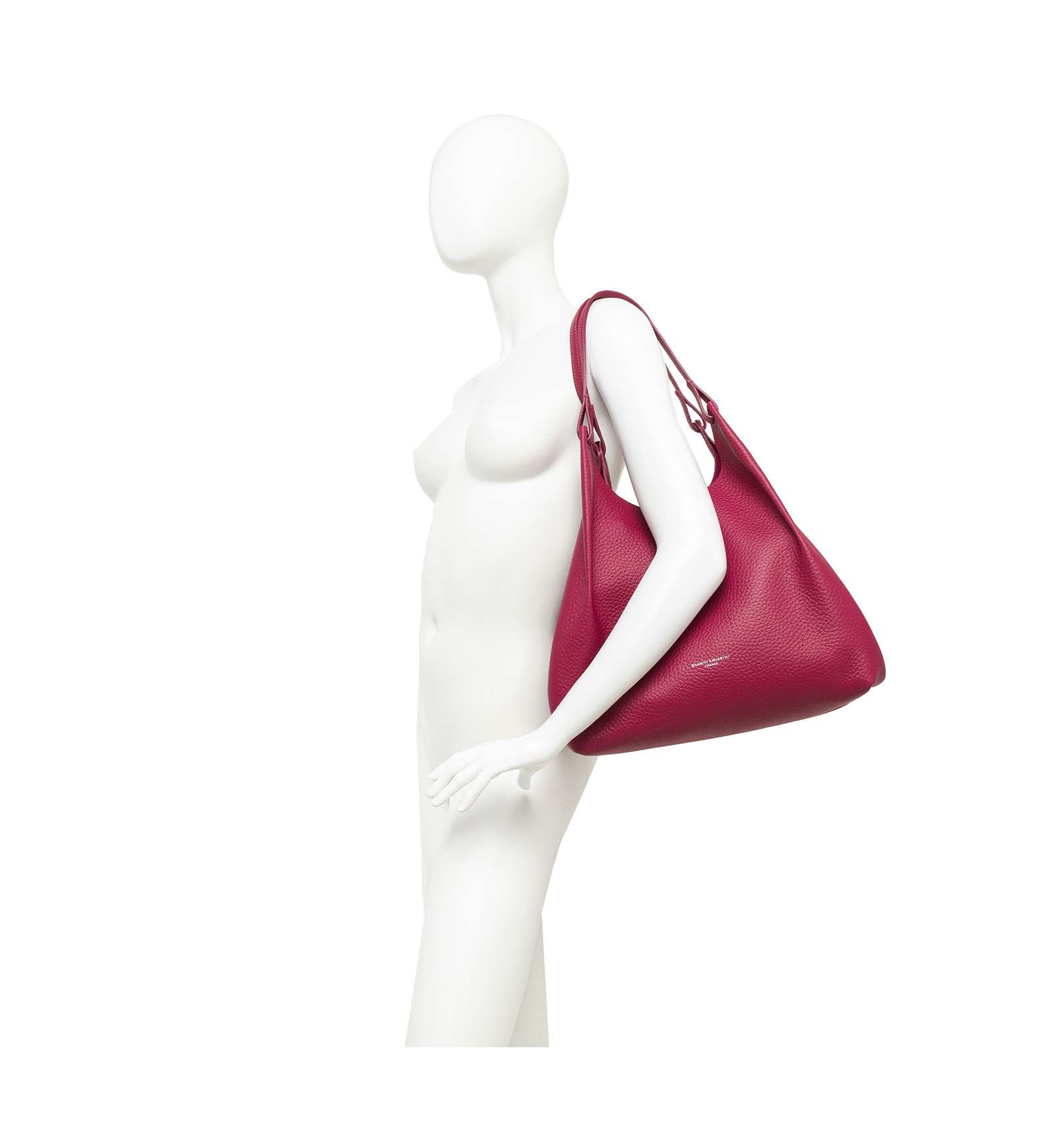 L'icona del brand, la borsa DUA, è realizzata in pelle bubble double dalla grana maxi, caratterizzata da una texture unica e distintiva. Dotata di un monoscomparto sfoderato, presenta profili superiori in pelle martellata e doppi manici in tono. Pratica ed essenziale, è perfetta per completare ogni look con stile. Può essere portata a mano o a spalla.