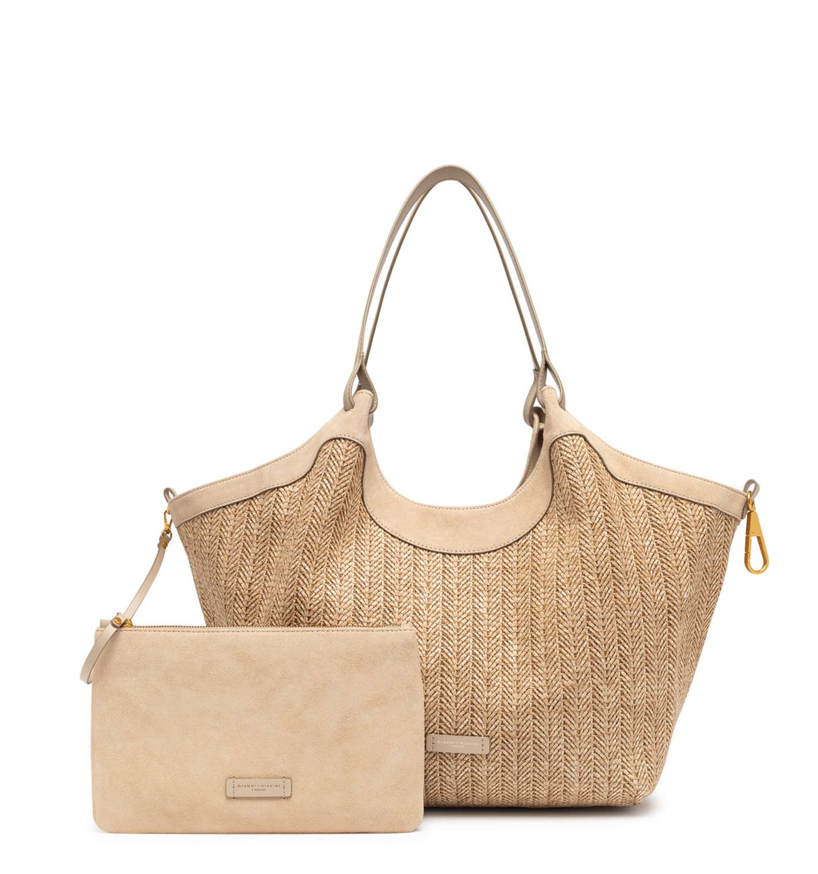 DUA è l'icona del brand, una borsa dal design semplice ma contemporaneo, è l'accessorio perfetto per chi desidera un tocco squisitamente summer, senza rinunciare alla praticità. Realizzata in paglia intrecciata, evoca un fascino rustico chic. Dotata di un monoscomparto sfoderato e doppi manici in tono, si chiude con un bottone a pressione. Può essere portata a mano o a spalla.
