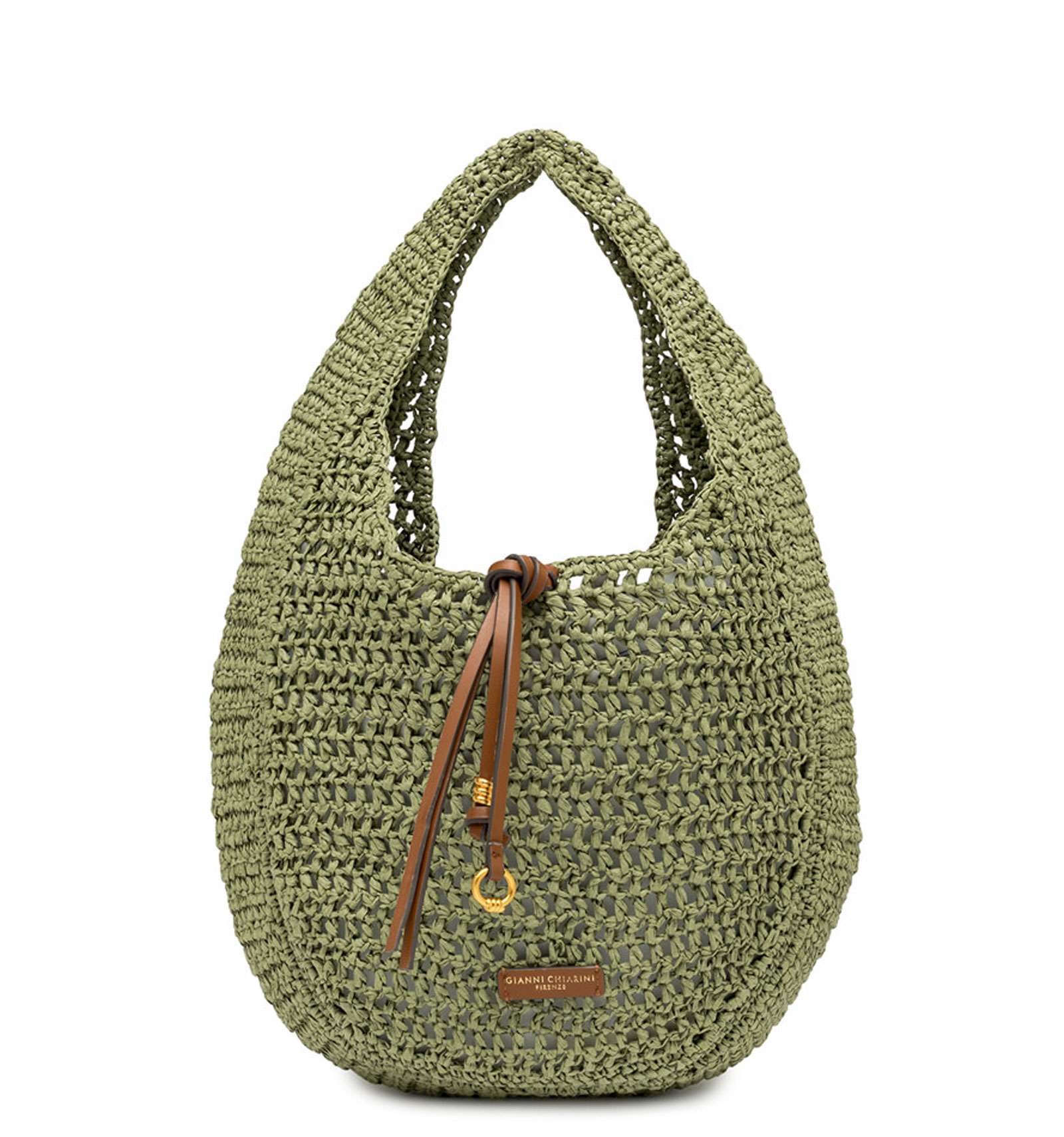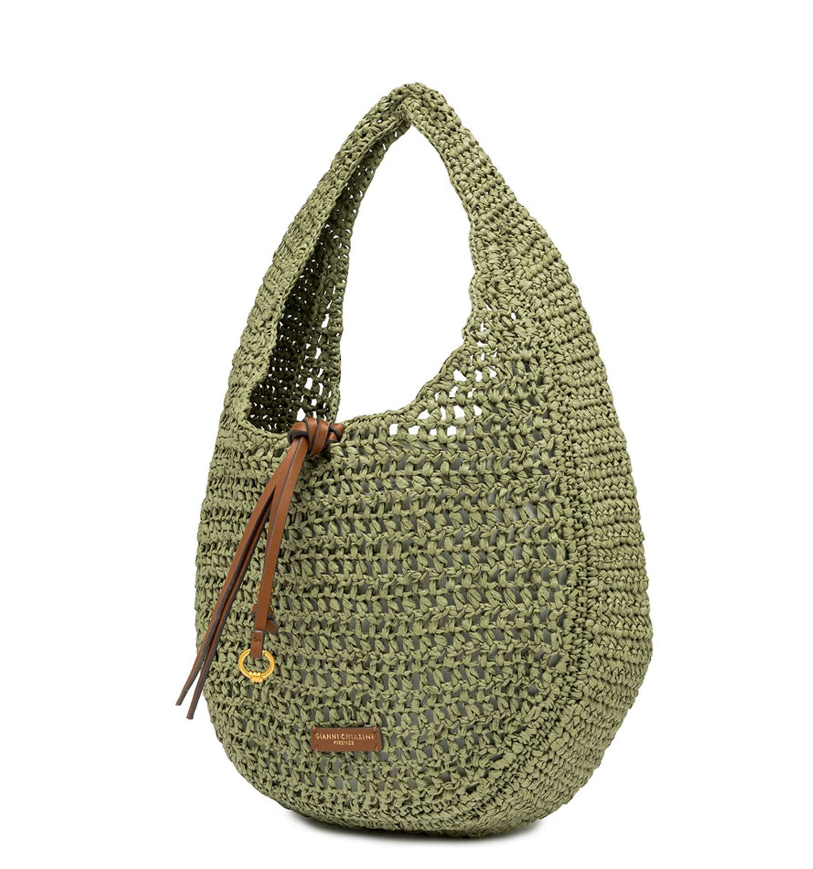 Nefeli è la nuova borsa hobo di Gianni Chiarini Firenze, realizzata in paglia crochet, perfetta per affrontare con leggerezza e stile le giornate estive. Presenta una chiusura con cordoncino e dettagli in metallo che donano un tocco luminoso al design. Dimensioni: 32x27x9 cm.