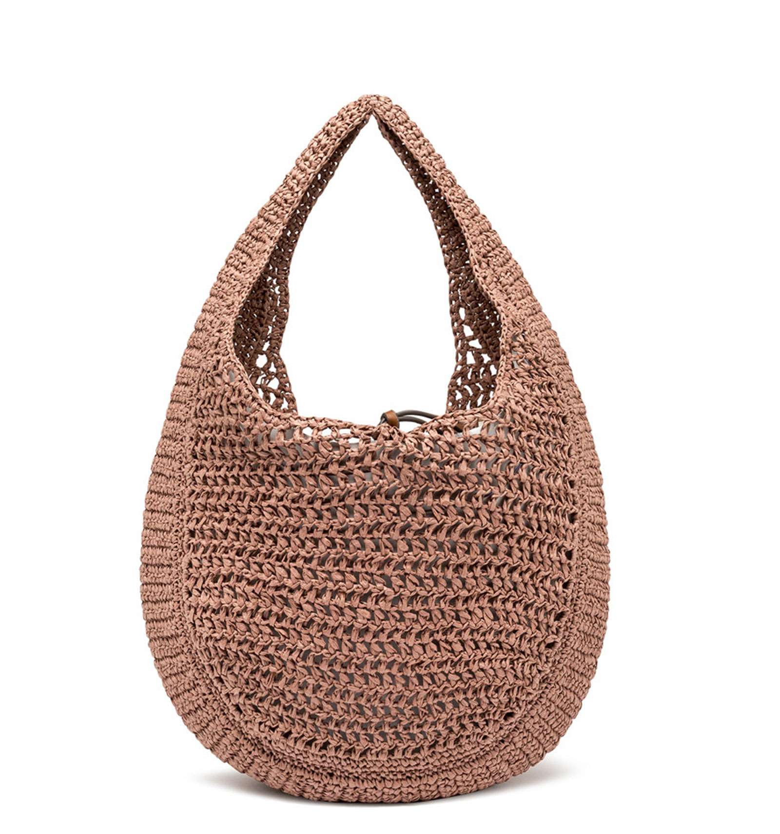Nefeli è la nuova borsa hobo di Gianni Chiarini Firenze, realizzata in paglia crochet, perfetta per affrontare con leggerezza e stile le giornate estive. Presenta una chiusura con cordoncino e dettagli in metallo che donano un tocco luminoso al design. Dimensioni: 32x27x9 cm.