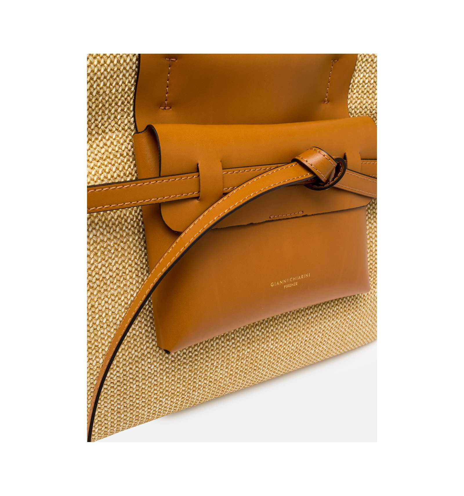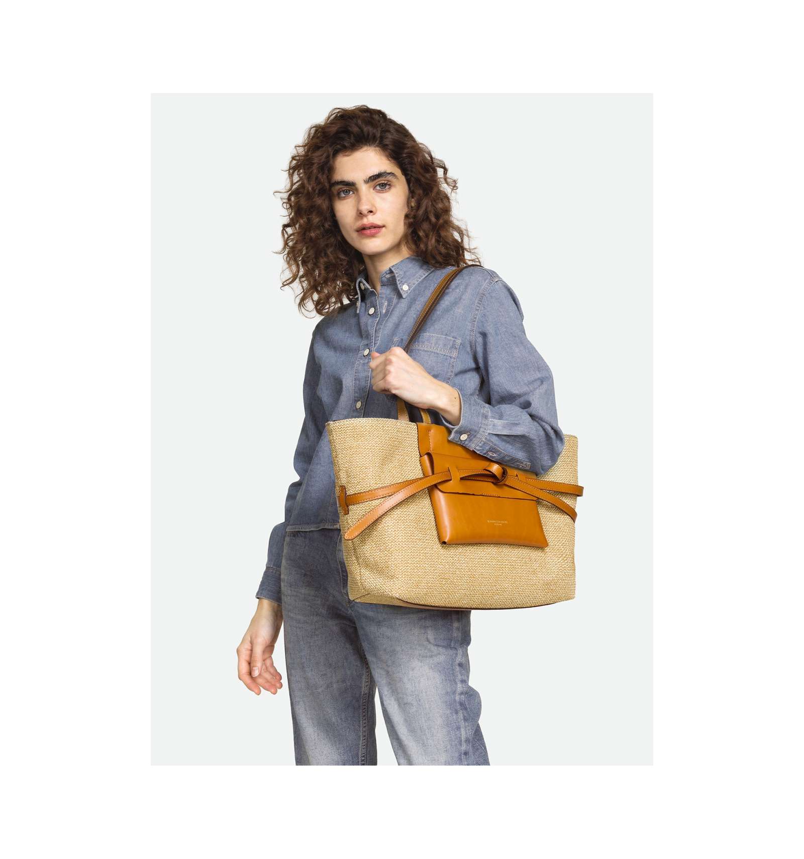 Belty è la nuova shopper bag firmata Gianni Chiarini Firenze, realizzata in paglia e arricchita da dettagli in pelle. Il dettaglio distintivo è il laccio che avvolge la borsa come una cintura, creando un elegante nodo decorativo sul davanti. Dotata di manici superiori, è perfetta per un utilizzo daily.