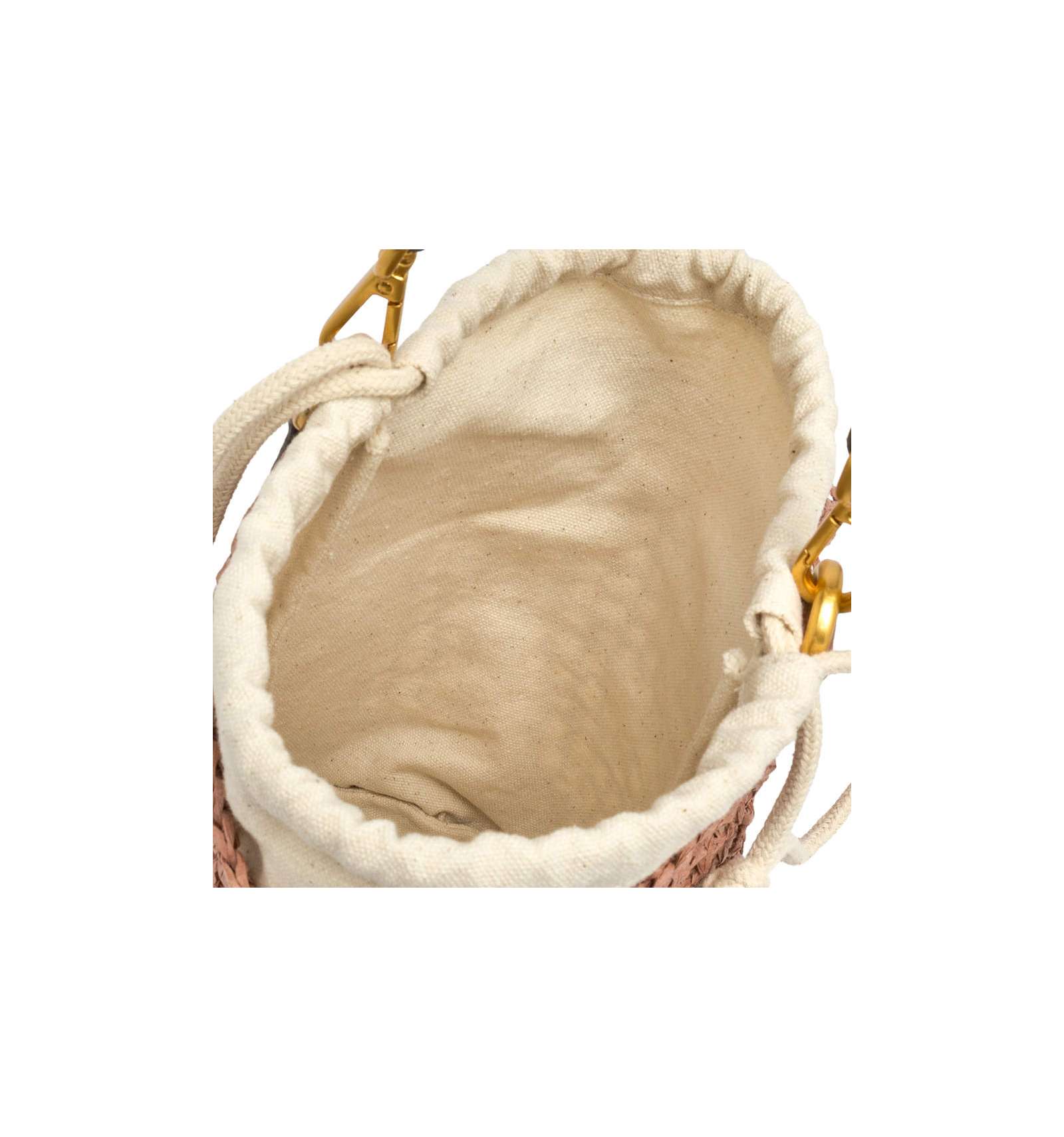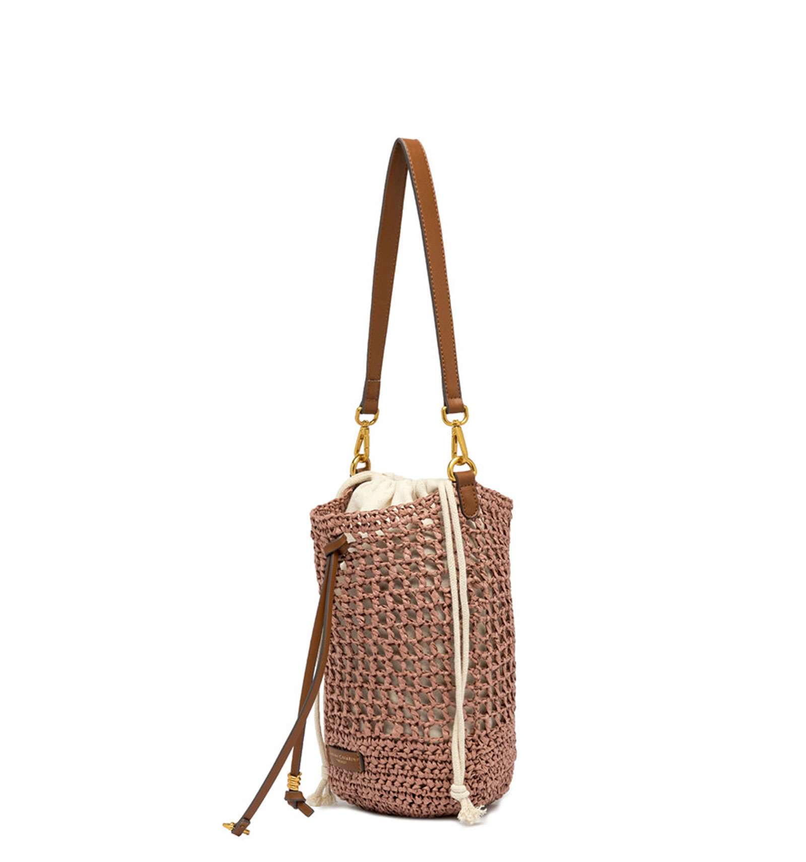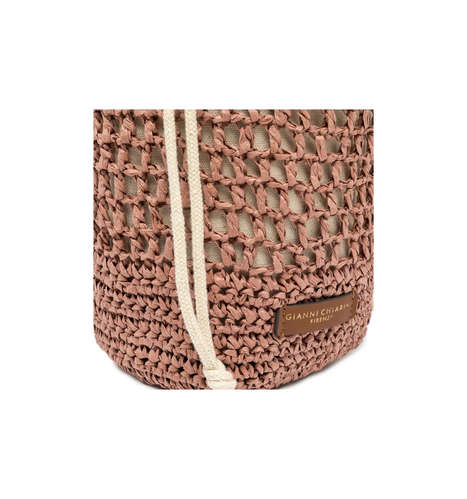 Nefeli è la nuova borsa a secchiello di Gianni Chiarini Firenze, realizzata in paglia crochet, perfetta per affrontare con leggerezza e stile le giornate estive. Presenta una chiusura con coulisse e dettagli in metallo che donano un tocco luminoso al design. Dotata di tracolla pratica e removibile per un utilizzo versatile. Dimensioni: 16x27x16 cm.