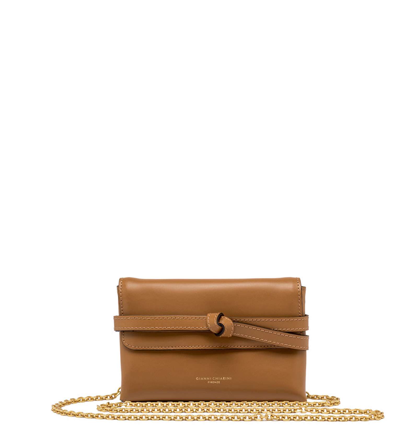 Belty è la nuova pochette firmata Gianni Chiarini Firenze, realizzata in pelle liscia e arricchita da dettagli in pelle. Il dettaglio distintivo è il laccio che avvolge la borsa come una cintura, creando un elegante nodo decorativo sul davanti. Dotata di una tracolla removibile, è perfetta anche per un utilizzo crossbody.