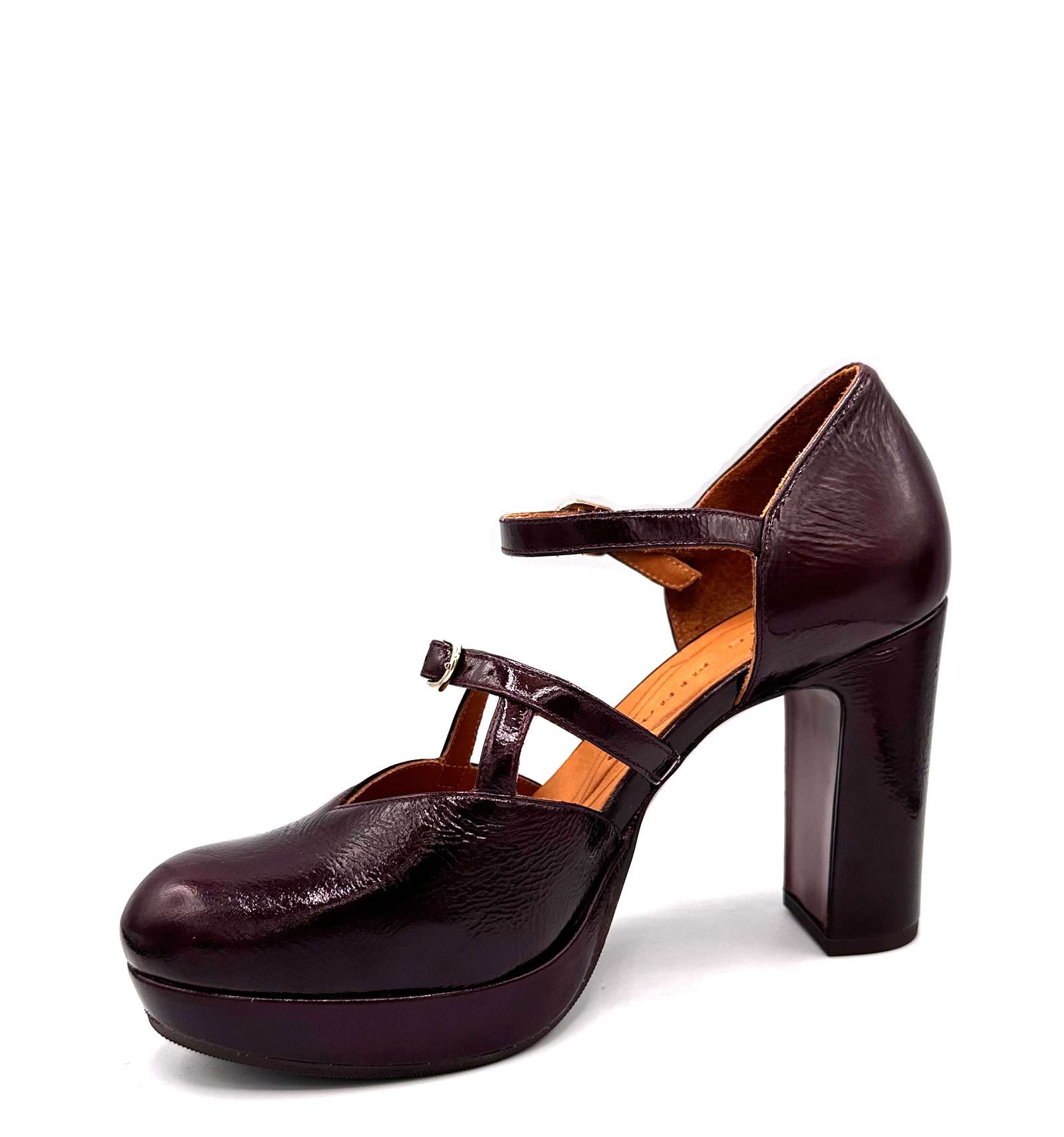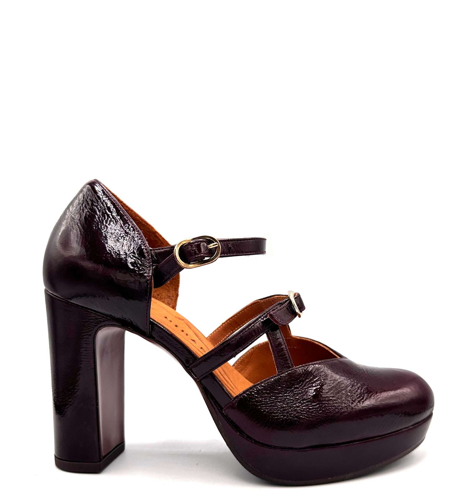 Mary Jane in pelle lucida con cinturino regolabile, di colore bordeaux