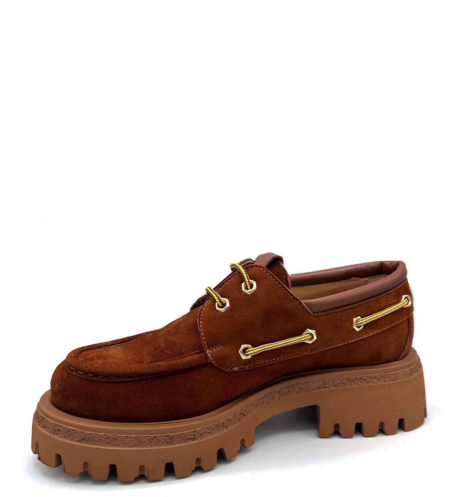 Scarpa stringata di Chiara Luciani in camoscio con fondo carrarmato.
