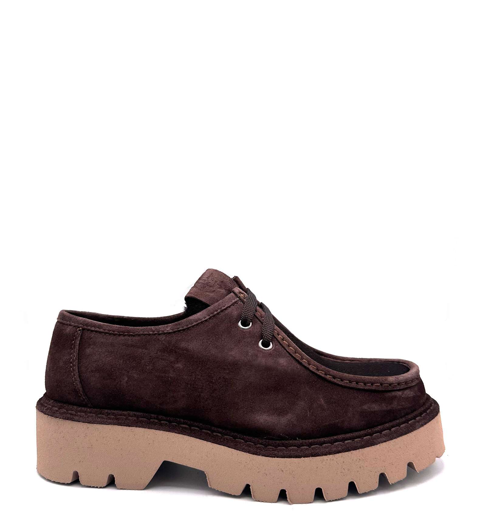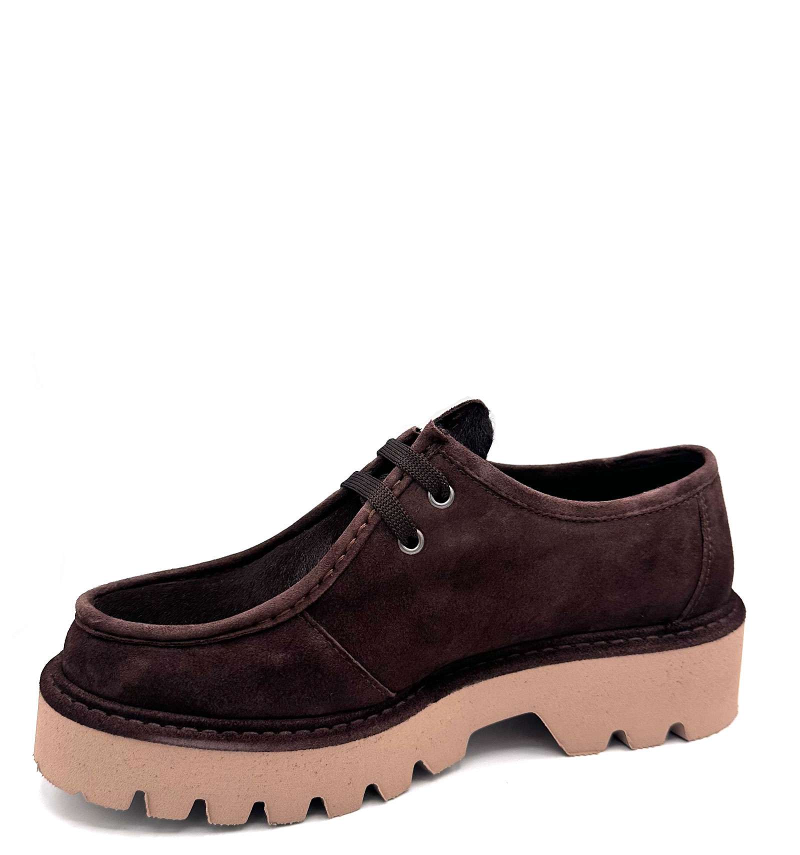 Scarpa stringata di Chiara Luciani in camoscio con fondo carrarmato.