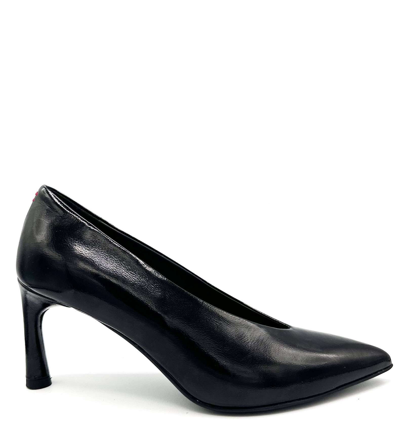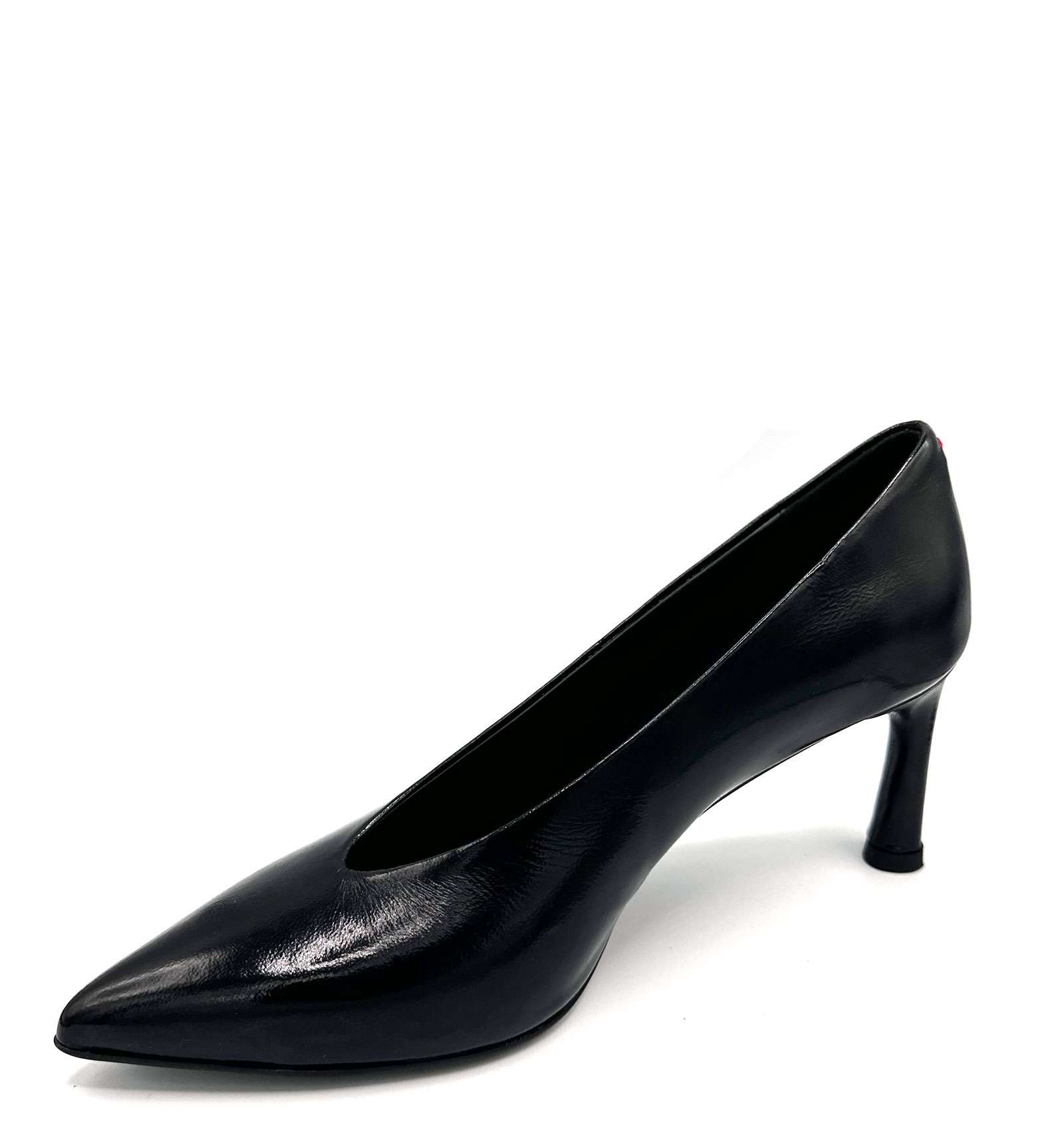 Decolletè di Halmanera in vernicetta nera, con altezza tacco 7,5 cm.