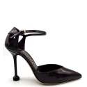 Decollete' in vernice con cinturino alla caviglia. Scollo a punta. Suola in cuoio.