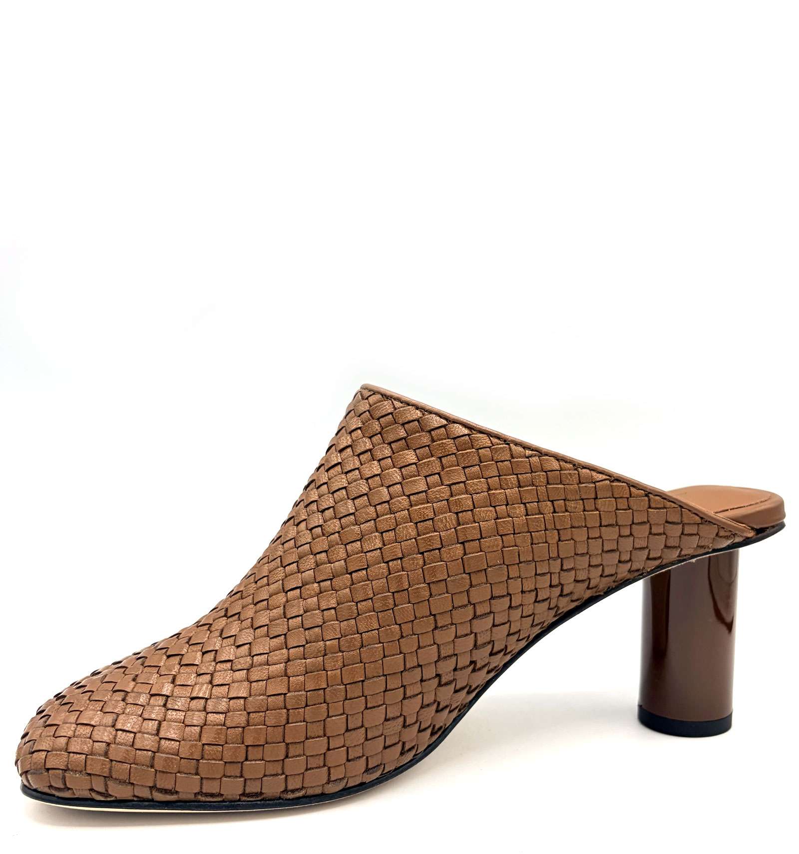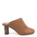 Sabot in pelle intrecciata color biscotto con suola in cuoio