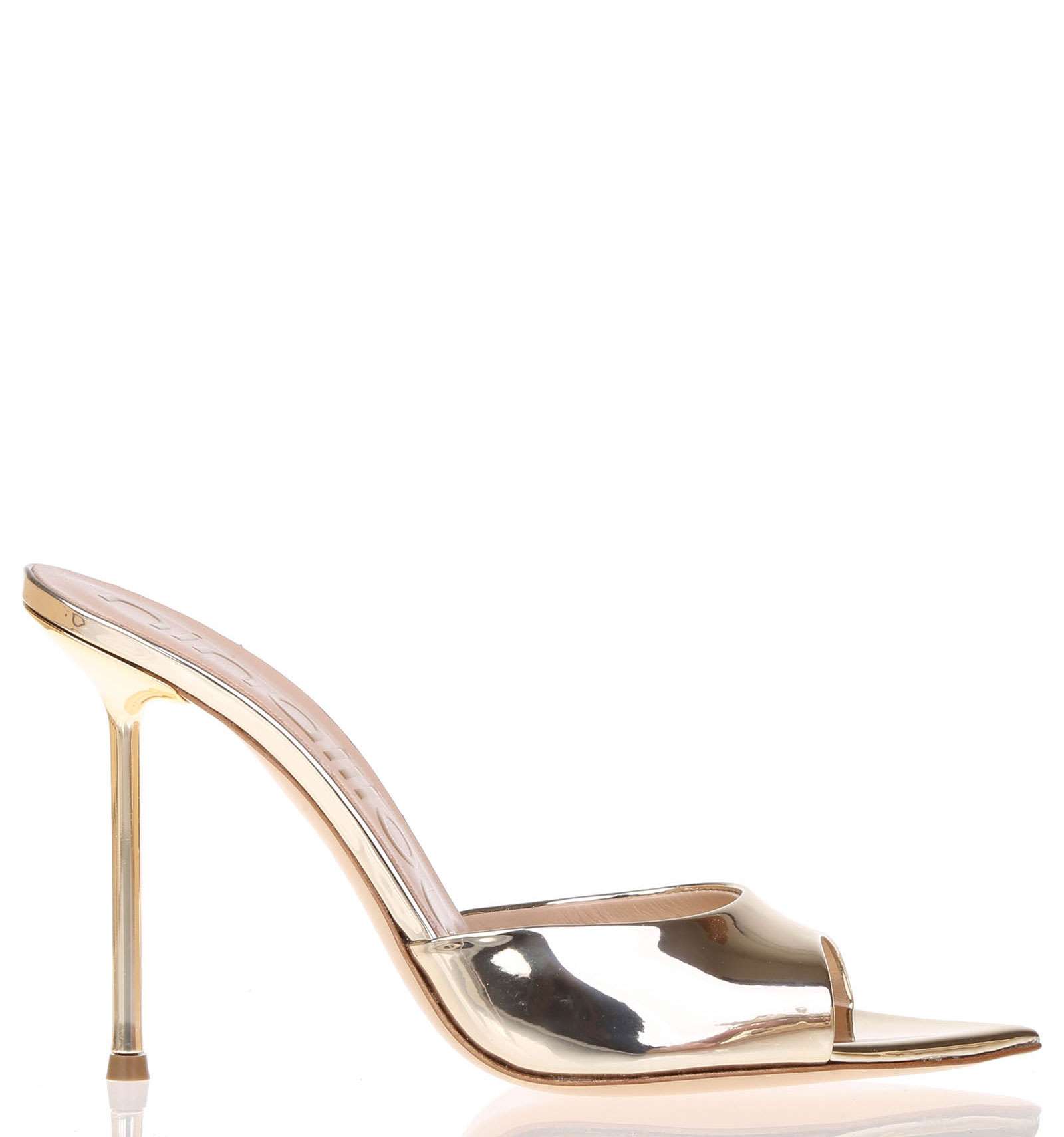 Sensuale e deciso, questo sandalo gioca con i contrasti per catturare lo sguardo. La linea slanciata e la punta affusolata esaltano la femminilità, accompagnate da un tacco cromato che dona sicurezza e portamento. Un modello audace e sofisticato, pensato per chi ama distinguersi con eleganza e personalità.