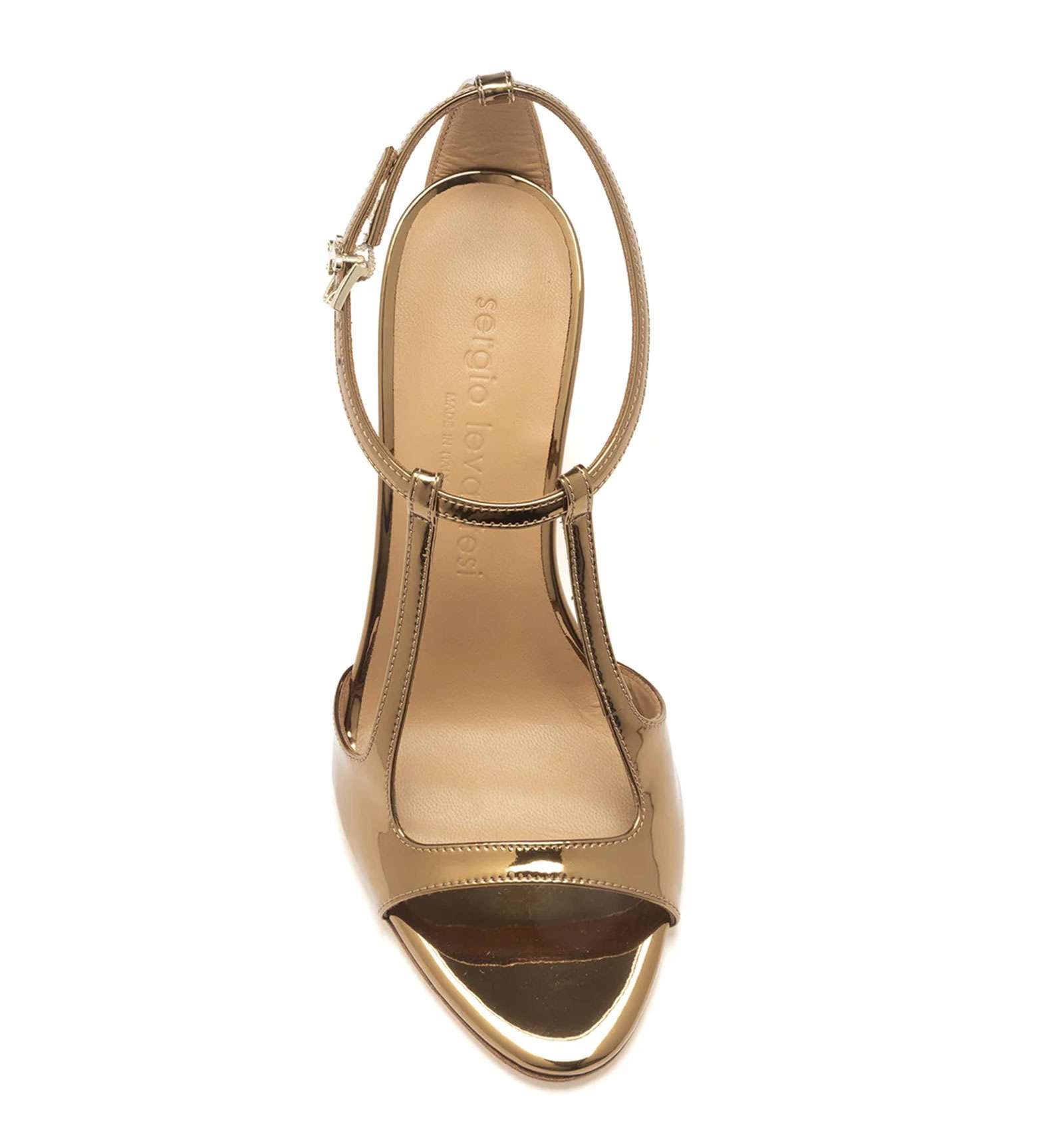 Sandalo elegante con un tacco da 90 mm. Realizzato in pelle ed ecopelle, dona luce al passo con una calzata stabile grazie alla suola in cuoio e mezza gomma. Fatto a mano in Italia.