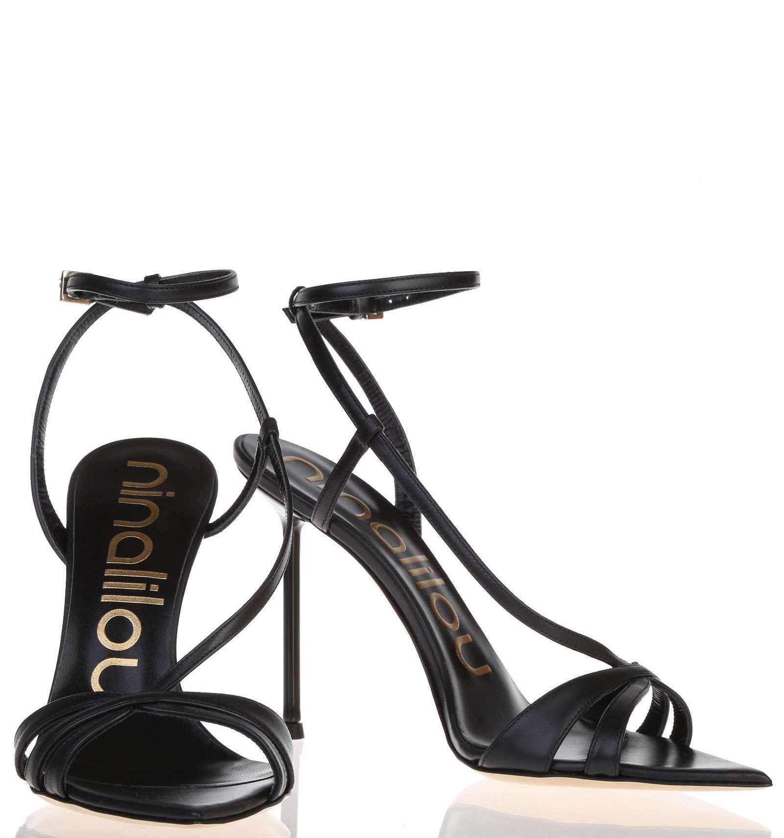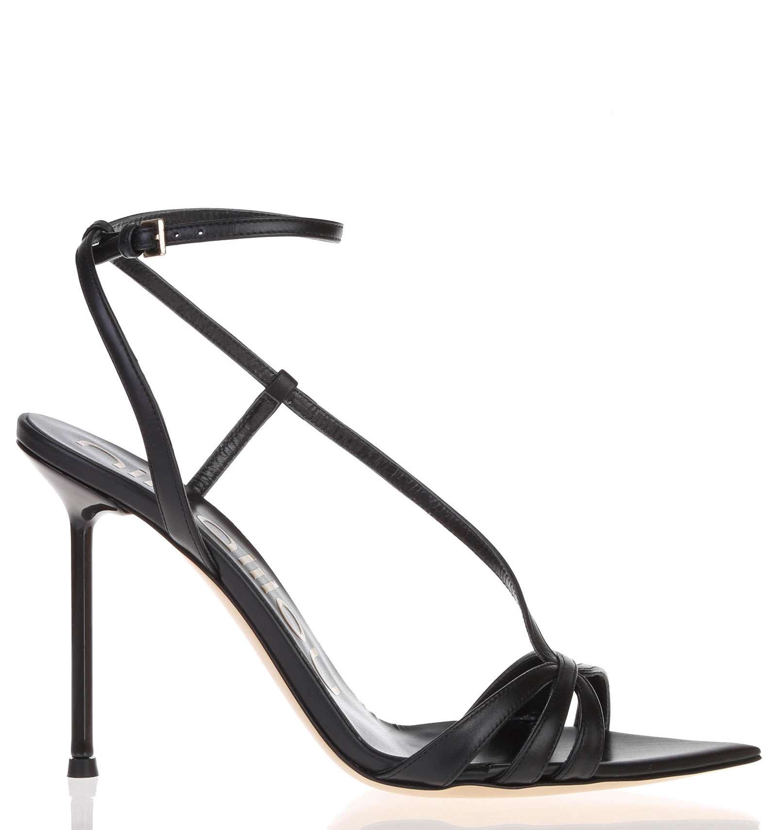 Sandalo in pelle con cinturino alla caviglia. Suola a punta, in cuoio. Tacco cromato: 10,5 cm.