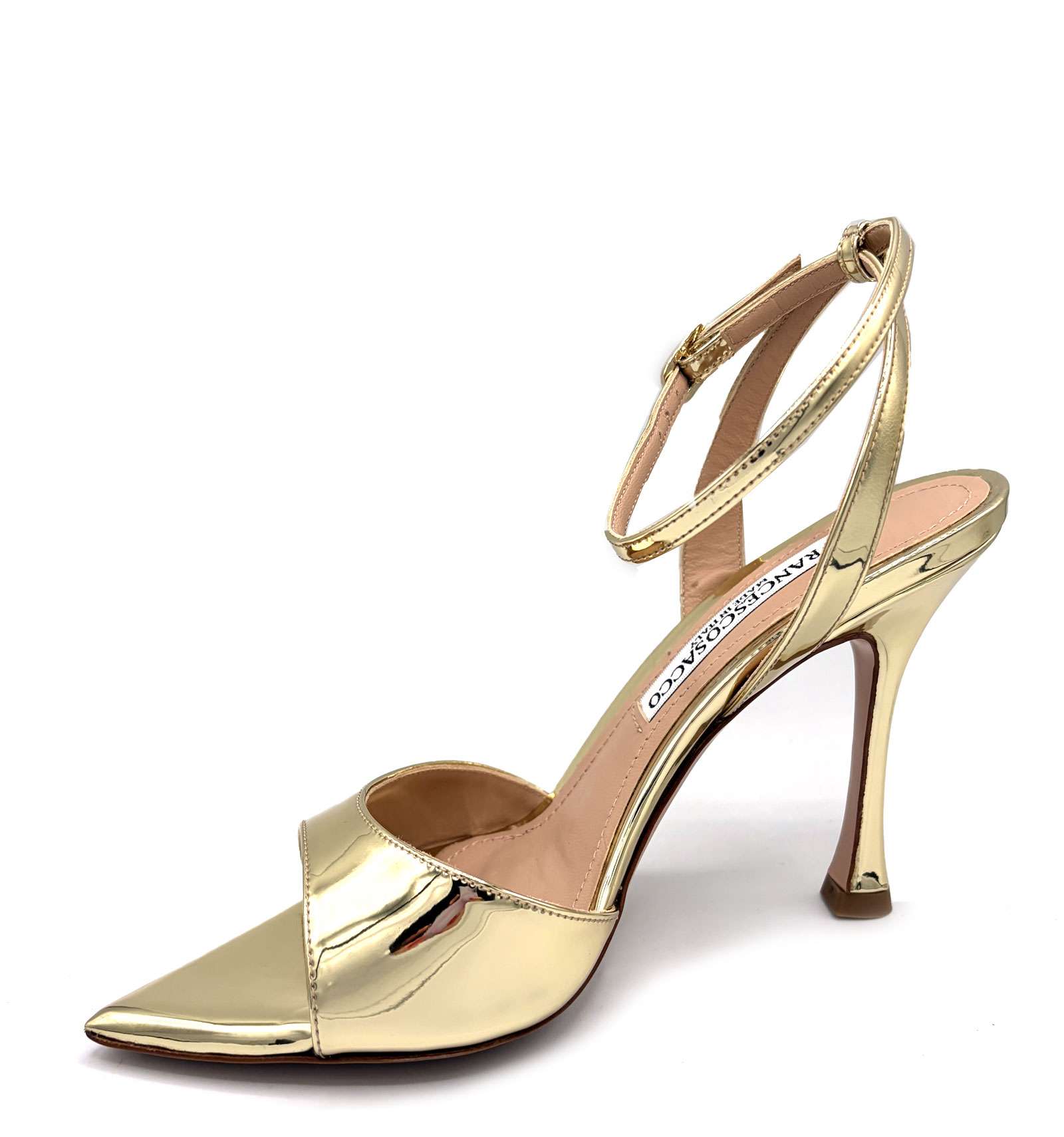 Sandalo di FRANCESCO SACCO in specchio platino altezza tacco 95 mm.