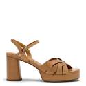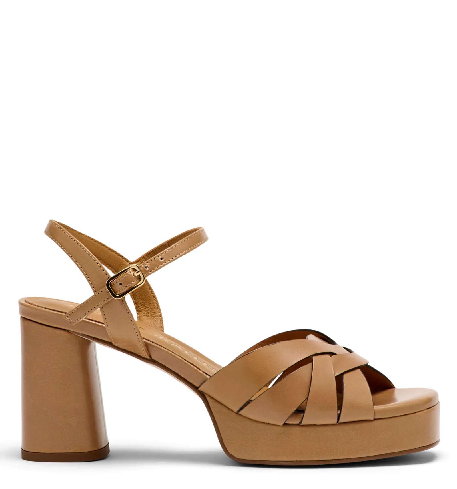 Sandali con tacco in pelle marrone. Il design con cinturini intrecciati aggiunge eleganza e un tocco moderno. Dotati di cinturino regolabile alla caviglia e soletta imbottita. Ideali per eventi o look sofisticati, offrono altezza, comfort e supporto per tutto il giorno.