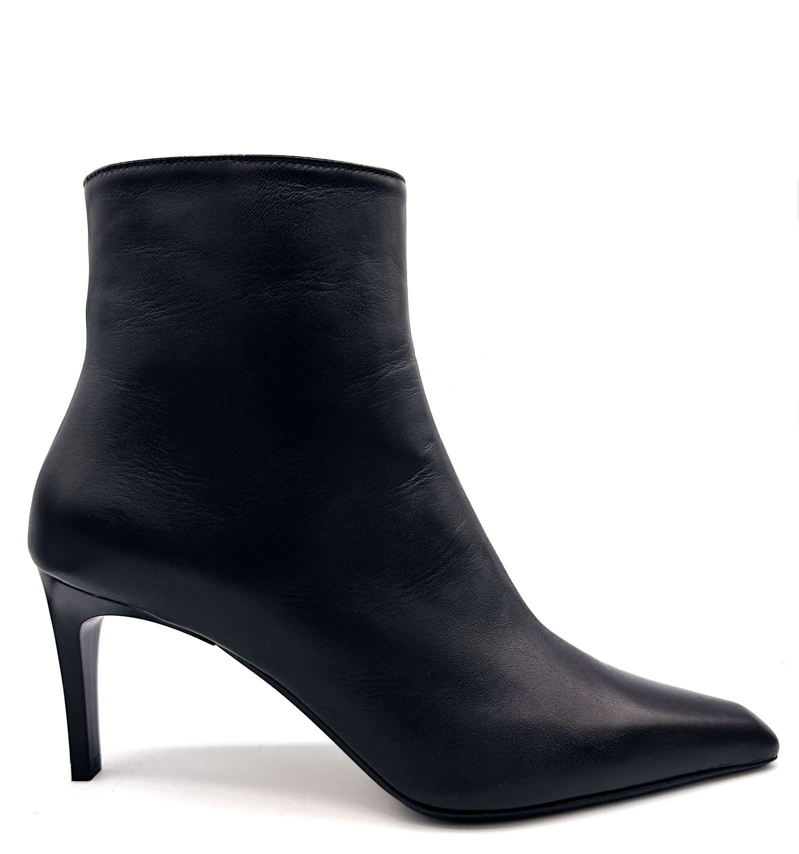 Tronchetto in pelle di colore nero. Zip di chiusura.